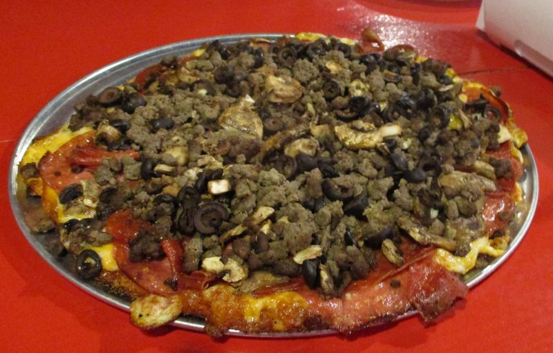 Well... I fought it for decades, but all the stars aligned up and we finally tried this iconic ML pizza joint. I kept telling myself over the years I would not like their ridiculously 'over-topping-ed' creations. They won. We liked our pie a lot. While I certainly would not make wheels like this a regular dining occurence, it really is a decadent every once in while flirtation. I can't even categorize them in any specific pizza style? They are just....them. A big thing that stands out (to me), is the ground beef they use is clearly not some pre-fab nuggets from a frozen bag. It's the real deal. We went with a medium, and the best I could do was three of the smaller slices. The big, meaty wings they have did effect that, for sure, but one would always think that two healthy--and hungry--adults could finish a medium pizza w/6 breaded wings. The rest of it sits in our fridge, and mocks us for being the weasel weenies we are. I must turn in my man-pizza-parlor card. Oh the shame...