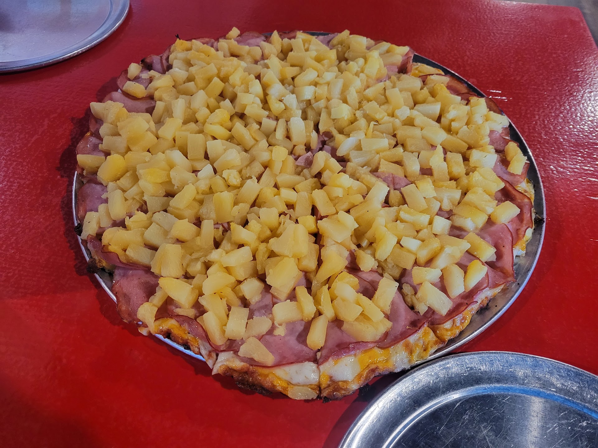 Read moreChico's pizza is just not my cup of tea. It's insanely greasy and the crust is floppy because of all the grease. I'm also not a fan of the cheese they use, it tastes vaguely processed. However, I think because of childhood nostalgia, my husband as well as locals absolutely love it. Which is why I gave it 3 stars, since it has a rabid fandom, but that definitely doesn't include me (I'd give it 1 star personally). If you love grease and heartburn one of the most popular pizzas here is the "Hochstatter Special". As you can see from my pictures, it is absolutely loaded in toppings, and will set you back like $38 for a giant size. Basically, if you aren't a local, be prepared for the pizza not to live up to the hype unless a loaded greasy pizza is your jam (which it might be, and this may end up your new favorite, who knows?). It seems to either be adored or hated, with very few in-between opinions. Heads up, it is super difficult to call in an order because the phone is always busy. And if you order in restaurant expect a 40-60...