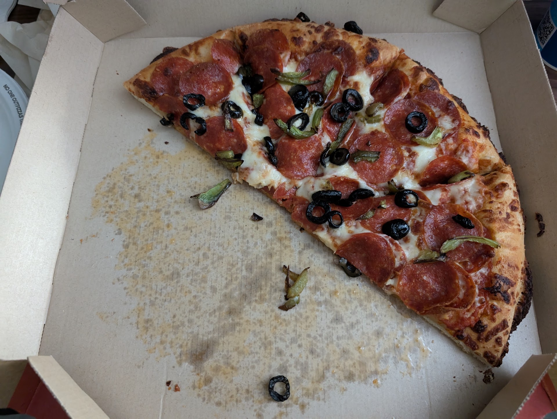 All this just so I can pick up my already paid for pizza, which all he had to do was look at the receipt and hand it to me. Instead he insisted on making a big deal of the lack of my mask, but no mention of the other employees failure to wear one properly.