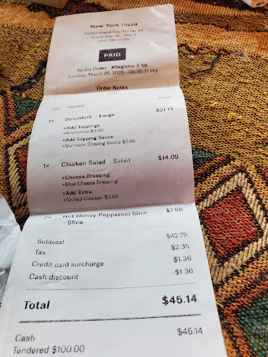 Ā Ā Ā Read moreExcellent pizza! They make an awesome pie with the finest ingredients. I was surprised to be honest as Iām picky with pizza having been raised in the North East. High quality cheese for sure, not just oily shredded cheese that other places use. Iām sure some may think itās pricey but you get what you pay for. Staff is very friendly and I saw at least 6 people if not 8 all hustling at their jobs all at once. I highly recommend trying this place out if you like pizza, Stromboli, calzone etc. I canāt wait to try a cheese steak or chicken cheese steak and maybe a sausage roll. Friday evenings are pretty busy but I was in and out in about half hour or less even though they were busier than a Porto-pottie at Mardi Gras! Great pizza! Great Staff! Clean Business! My props to...