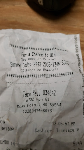 Read moreI don't even want to put any stars. This is the worst Taco Bell in Mississippi. They have no cashier's at anytime I've ever been inside the restaurant. You can not order food if you don't have the app or you have to use the kiosk. No one here cares about anything customer service what so ever. I order boxes. It's not rocket science. It's 4 items in a box. Everytime there it's been the worst experience I've ever had at Taco Bell. And I really love Taco Bell. I've eaten here 4 times. And I live down the street. They don't care about anyone in the store. All's it is is drive through and they can't do that right. Tonight I order the same box ove ordered that last 3 times at thia store. No napkins. And your supposed to have 4 items in the box. No tacos today. And when you call. Whats qith the extra stuff. I paid you for a meal. You offer a service of food and you did not put all my food in there. I'm at the hotel behind the store" when did you order". It don't matter if I order 5 min ago. Or this morning. I paid for a service of food. That's what I want. Don't ever shop here. The food ain't that good. And the manager and employee do not care about anything that goes out that door unless your a 17 year old girl that comes through and every guys in the store paysore attention to her then the food I'm ordering. It's a deceased to have a restaurant and say your a Manager of that store. Good luck. You will never get a dime from me again...