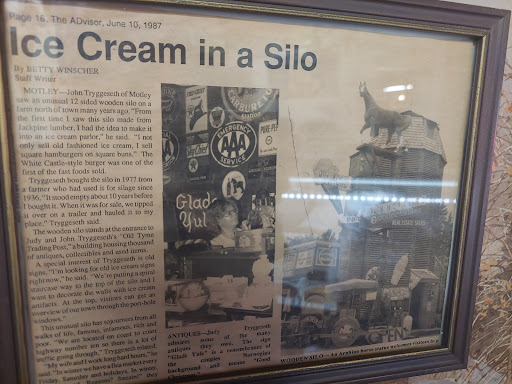 Many flavors of handscopped Ice Cream! 16 different kinds, bubble gum, cotton candy and Mocha Chip were our favorites! Very resonably prices. Judy, the owner, was so kind! We stopped in on Mother's Day 2023 and were delighted to have hand scooped ice cream at 7pm! This is such a fun place to be and it has been open for so many many years! The 12 sided Silo is very unique! I love the antique shop that is connected!! Wow so many amazing finds in there, we didn't go in the antique shop but I gazed in through the windows. Lots of fun things in the front for the kids to see too like the space ship and tractor. Also got a punch card for 1 free cone once we...