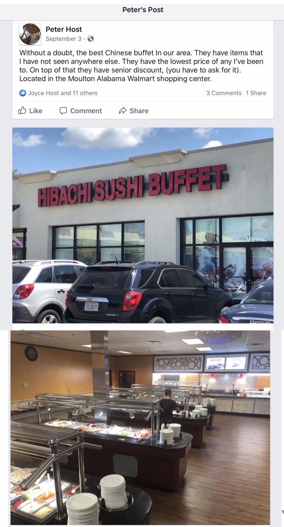 Read moreThis buffet is in a strip mail, which is convenient and close to Walmart,Dollar Tree ,A Mexican restaurant and other stores. You have to wear a mask and a glove,but you are allowed to get your own food from the buffet.The restaurant does have a Hibachi bar and it has several choices( although very little for Vegans). There was a waitress in raggy unhemmed blue jeans who was waiting on people and seemed to have a bad attitude. She sat us at a table( family of 4 and 1 guest). She only refilled drinks once and that 2nd time was when we had almost finished our plate of food. She kept staring at us and then she came to me and asked if the ticket was all together. I said Yes and she said ," When you pay,pay at me!"My daughter and I asked for takeout cups and she brought them,but something was in that 2nd glass of tea,that she brought my daughter,so my daughter did not use the to go cup. We went to the restroom and when we returned , my husband was paying. She saw him count out the money and stood over him and said," You gonna leave me something? You gonna leave me a tip"! He told her yes, and she demanded $1 for each person. He told her that , "Since you came over here and were so rude,I leave you nothing! You do not demand of me a tip in a rude way. ," We left and my husband was so mad that he left his denim coat. So we were out of town on another state in the winter without a coat for him. There was a Chinese man at the front who was polite and nice. Generally it has been my experience that Chinese women are quite rude( not all,but the few who are nice are mowed down by the loud,demanding ,hateful women!" If you go, refuse to pay her and pay the man at the register. He is nice. She is not! Personally I would never go back to this place,because of this waitress being so rude. And advice to all Chinese women wait staff,don't come at Latino men being rude or you will not get a cent,and do not come at them when their American wife leaves the table...