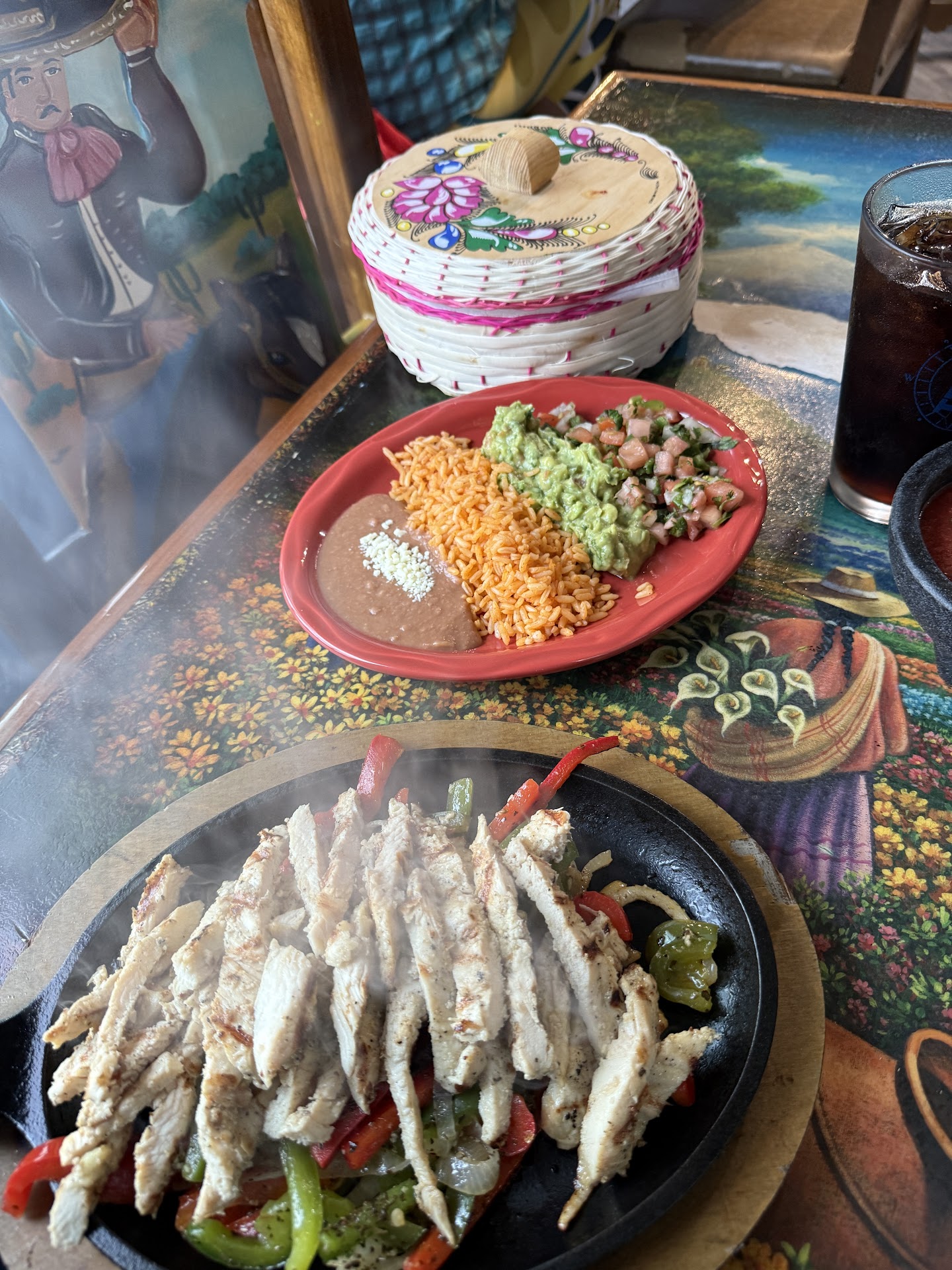 El mariachi more than that my expectations. It was the closest Mexican restaurant to the hotel we were staying at. That is why we initially chose here. Ecstatic that we ended up here. Not a lot of parking, not sure if there was more on the other side of the building. Huge outdoor dining area that would be useful in spring and summer. From the second I walked in, I loved the charm of the restaurant. They were way understaffed, the host who is also the bartender and waiter warned us ahead of time. He told us if we stayed we might have to wait for our food. That never happened. He was right on top of everything . He was visibly stressed, but did a fantastic job. I loved all the decor. Every table top and chair had a different theme. It depicted what life was like in Mexico in the past.