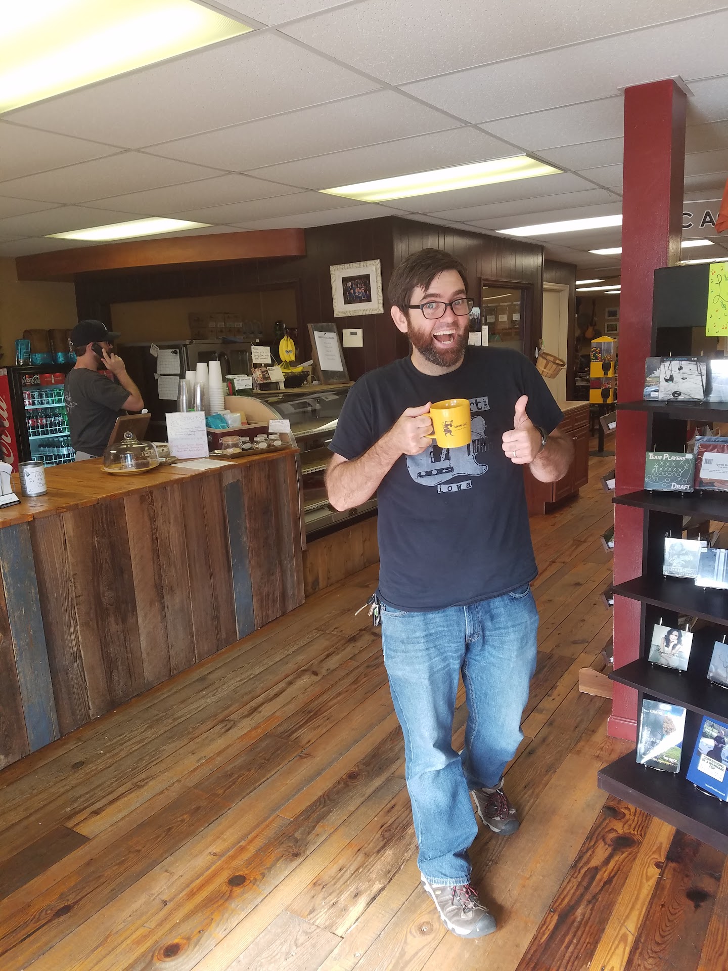 Fantastic coffee shop! You'll never want star bucks or any other joint again. Four pokestops and a gym in perfect walking distance! Wait there's more! They also have wifi! Yes wifi! Can you believe it?!? Again wifi along with pokestops and a gym!!! Perfect game trend magic is occurring here people! Plus you get coffee! Who doesn't love coffee!? Well that one guy, but who cares about that guy?! He's probably team instinct... Anyway yes get coffee here and wifi here!! Don't wait go now! Stop reading this and just go! Get off...