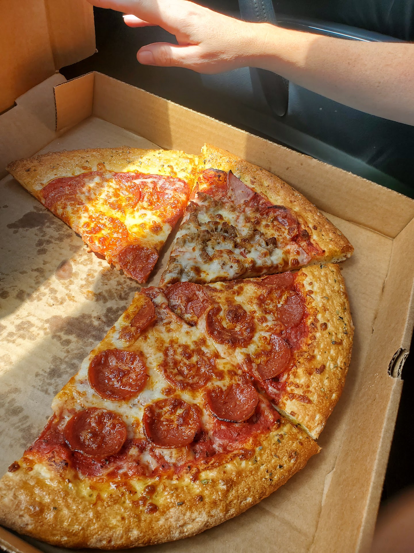 Read moreDoughboys is very good, the best thing I like is they have that pizza so big it can't fit through the drive thru window and their Calzones are so delicious I get mines full of meat with extra cheese abd mushrooms and it just melt in your mouth, they have really good wings with different varieties and also salads and they are so delicious you get them anyway...