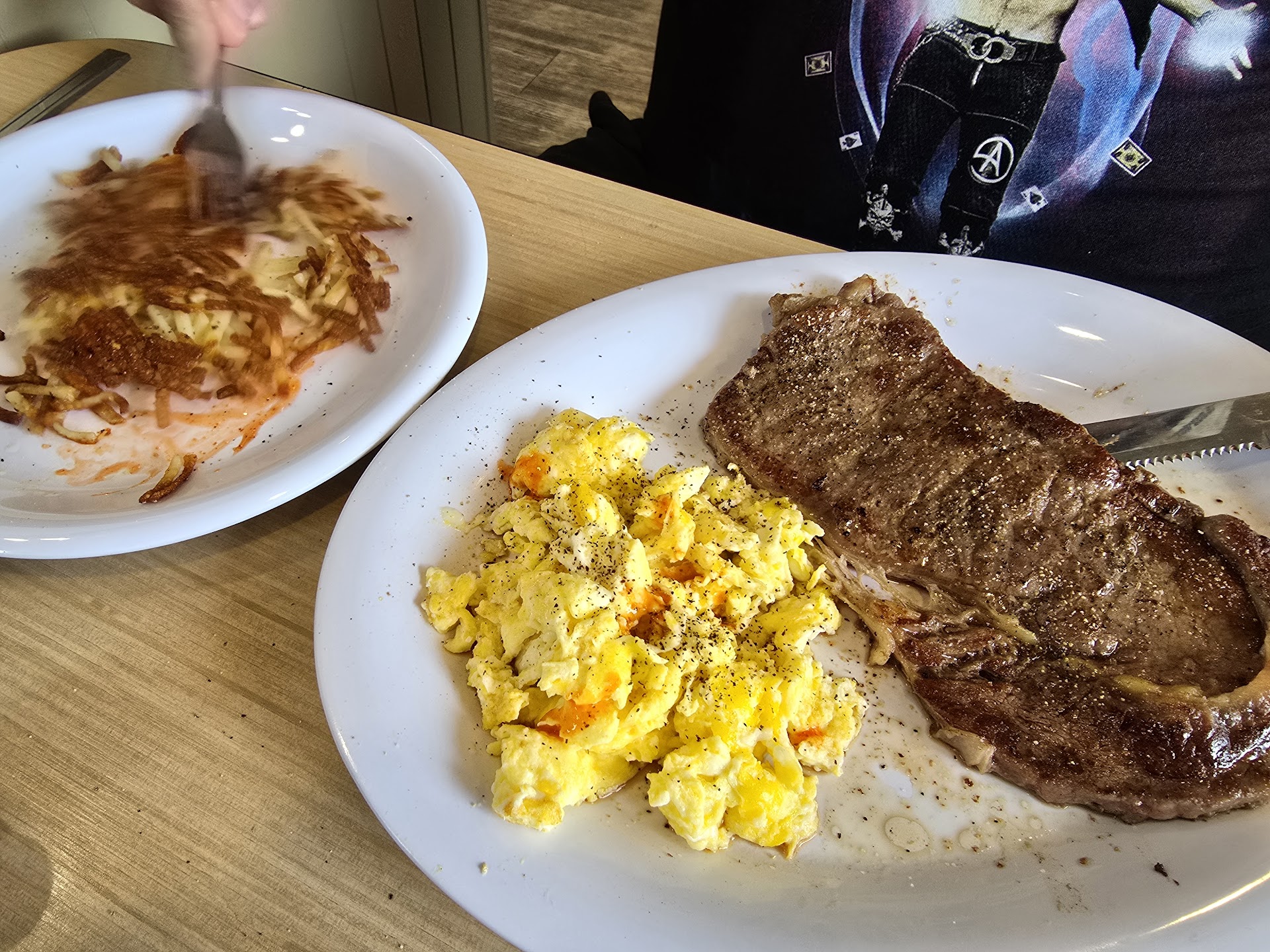 Ā Ā Ā Read moreDuring our visit, my spouses food was sloppily thrown on the plate. She ordered a meat lovers omelet and added jalapenos. The omelet was flat and laid over the top of her toppings. The bacon nor the sausage was cut up. When we brought it to the servers attention, she promptly went to the manager, who also cooks and attempted to get him to make it right. The manager starts getting loud with the server refusing to make it right. We immediately tell the server it is fine, we don't want her and him to cause an even bigger scene than what was already happening. The server ended up in the bathroom, I'm assuming in tears. That manager is rude, has no customer service knowledge and is just plain out NOT A NICE MAN!! We made sure the server was OK, put my wife's omelet together ourselves, ate our food and left. I hope the manager Jim (I believe was his name) is not there the next time we go to eat. We have been eating here once every 2 weeks and use to love the place. But unfortunately, we probably won't return because no server deserves to be talked...