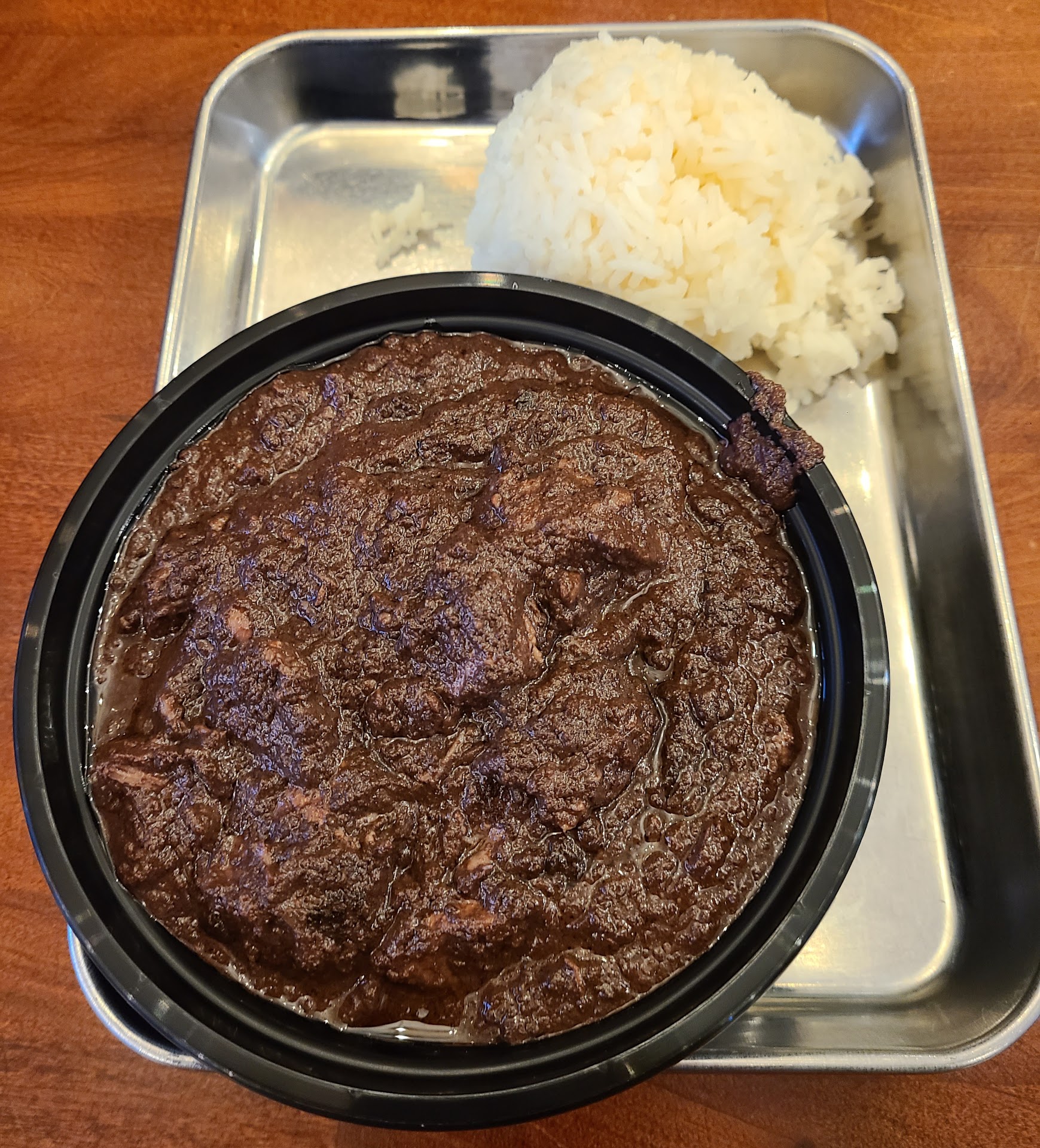 Chicken was a bit salty, to be honest, but so soft it fell off the bone. They gave 3 whole pieces of chicken, so it’s a filling meal. A tip would be to order an extra side of rice to mellow out some of the saltiness. We saw another table do the exact same thing.
