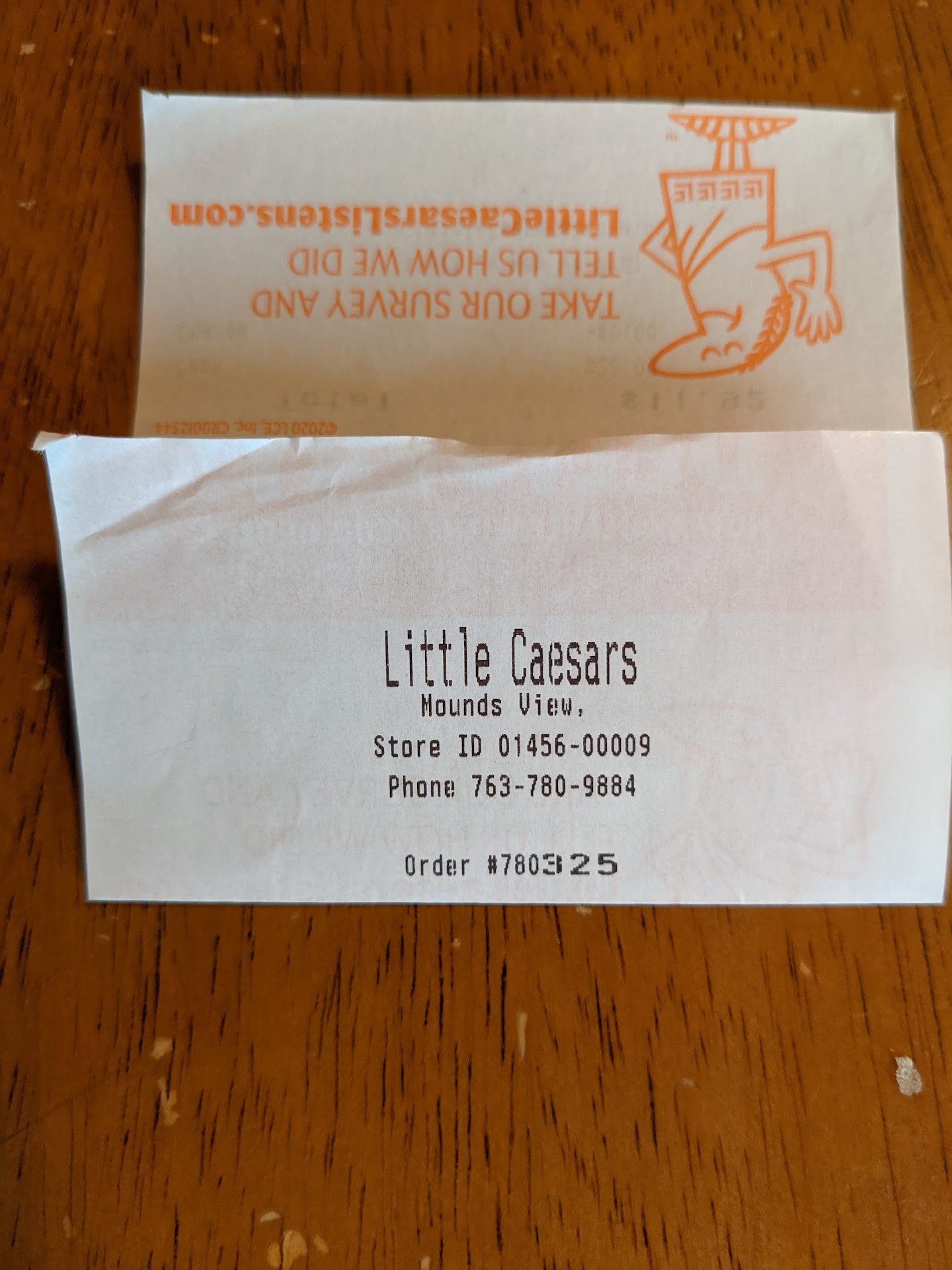 Read moreThis is the second time I've been to this location. The first time was a Friday evening. There were seven employees behind the counter - 1 sitting on a chair by the cooler joking and teasing the other employees who was apparently off duty - two in the prep area, two at the oven area, one at the cash register and one in the cooler. There were four customers waiting to be helped including myself. The lady in front of me had phoned in an order that wasn't processed. I'd phoned in an order that went out to someone else. The gal behind the counter didn't seem to know how to run the cash register, how much the sauces were (there is a sign right on them) or how to work with customers. The pizza line employees were throwing dough back and forth and joking and laughing. Whether they actually got any work done is questionable. I waited 20 minutes for a pizza that should have been ready.