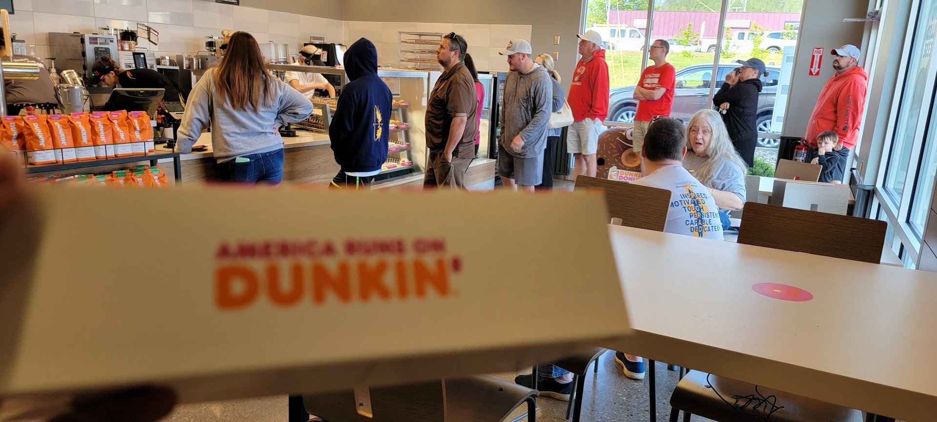 My husband and I stopped in to get coffee before a road trip. No one greeted us when we got in--okay, fine. I was the only person inside and there were two cars in the drivethrough. I stood at the counter, waiting to order while my husband went to the bathroom. (He gave me his order in advance) No one acknowledged me, said I'll be right with you, or anything. At least three employees walked by me in the 2 minutes i was standing at the counter, one of them being a girl who was ironically wearing an "i love my job" t-shirt, but everything about her screamed "i hate my job." My husband came back, asked me what I got, and it was about 10 seconds after that, that the employee that hated her life came up and asked what i wanted.