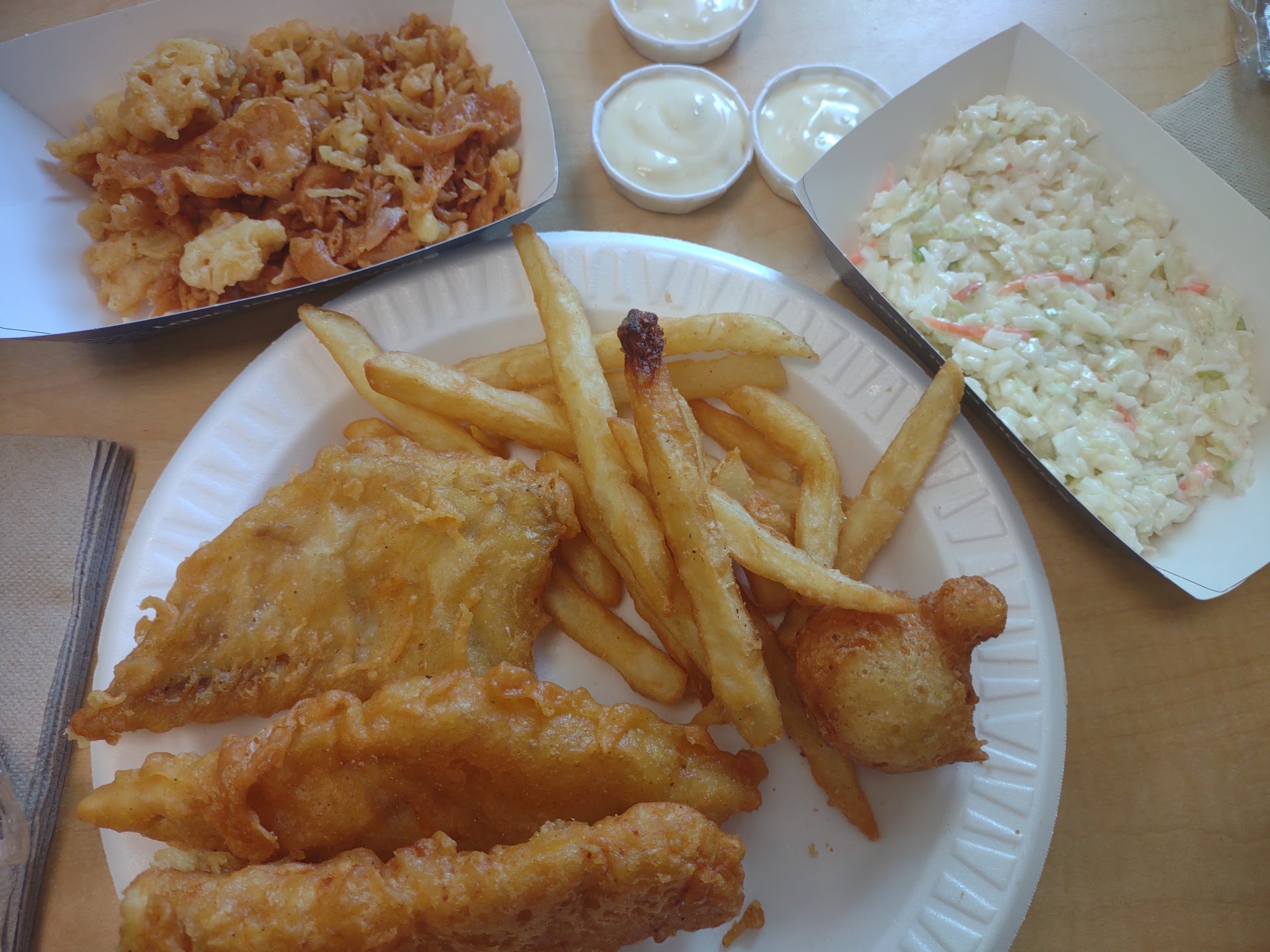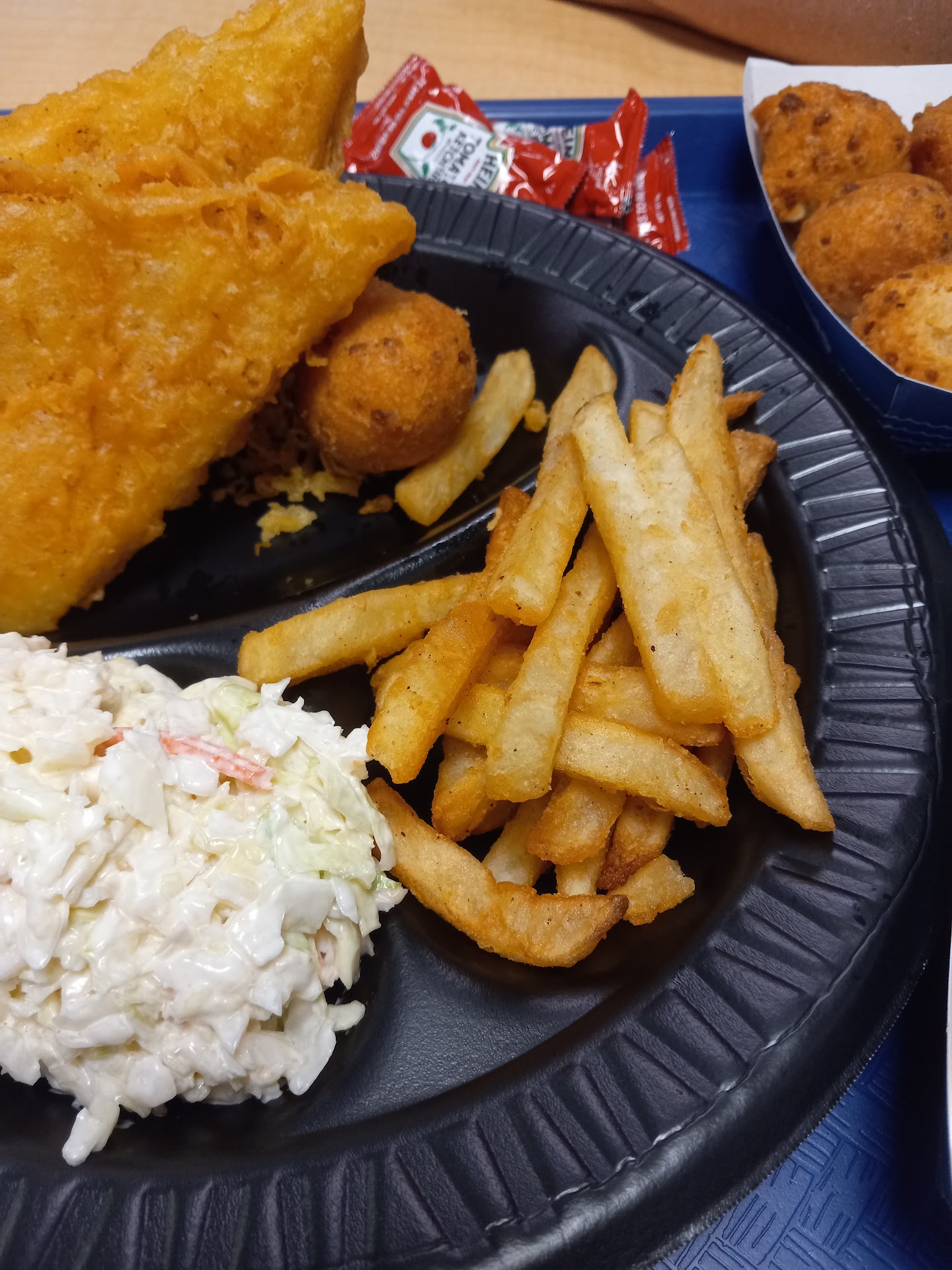 Read moreYoung lady missed one food item. No big deal . Put my food in the warmer until extra item was ready. Manager came over took a piece out of my box and put in another. I checked my box after I left. He put a pc of chicken in place of my fish. I didn't order chicken I ordered Fish and shrimp. Tried to eat the chicken anyway and couldn't. Toughest piece of chicken I ever had. Took one bite spit it out and tossed the rest. Tried the coleslaw next and had to throw that out as well. Had a bad...