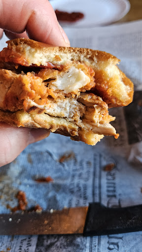 Read moreMy wife and I went there for the first time. So I post this, knowing that they are newly opened. We waited one hour and twenty-five minutes for our food to come to us.The beer batter fries that we ordered as an appetizer came out with our entrees, cold and soft.My wife ordered the Greek salad It did not have any black olives or banana peppers on it. She ordered it to have chicken. The chicken came out coated in hot sauce. I ordered the Godfather, my chicken breast. On that $14. sandwich was so dry. I could barely take a bite without drinking half of my beer. The mozzarella cheese sticks that were on the sandwich. As you can see, in the picture where I've taken a bite, we're cold and completely solid in the middle. They were not melty at all.. The bacon had obviously been cooked the day before or that morning and placed into a cooler without being dried off of grease properly because it had white congealed grease on the 2 bacon strips.. My wife and I love the Elkin destination and hope that somebody holds the mount airy destination up to the same standards, but it will be a while before we come back. It was very...