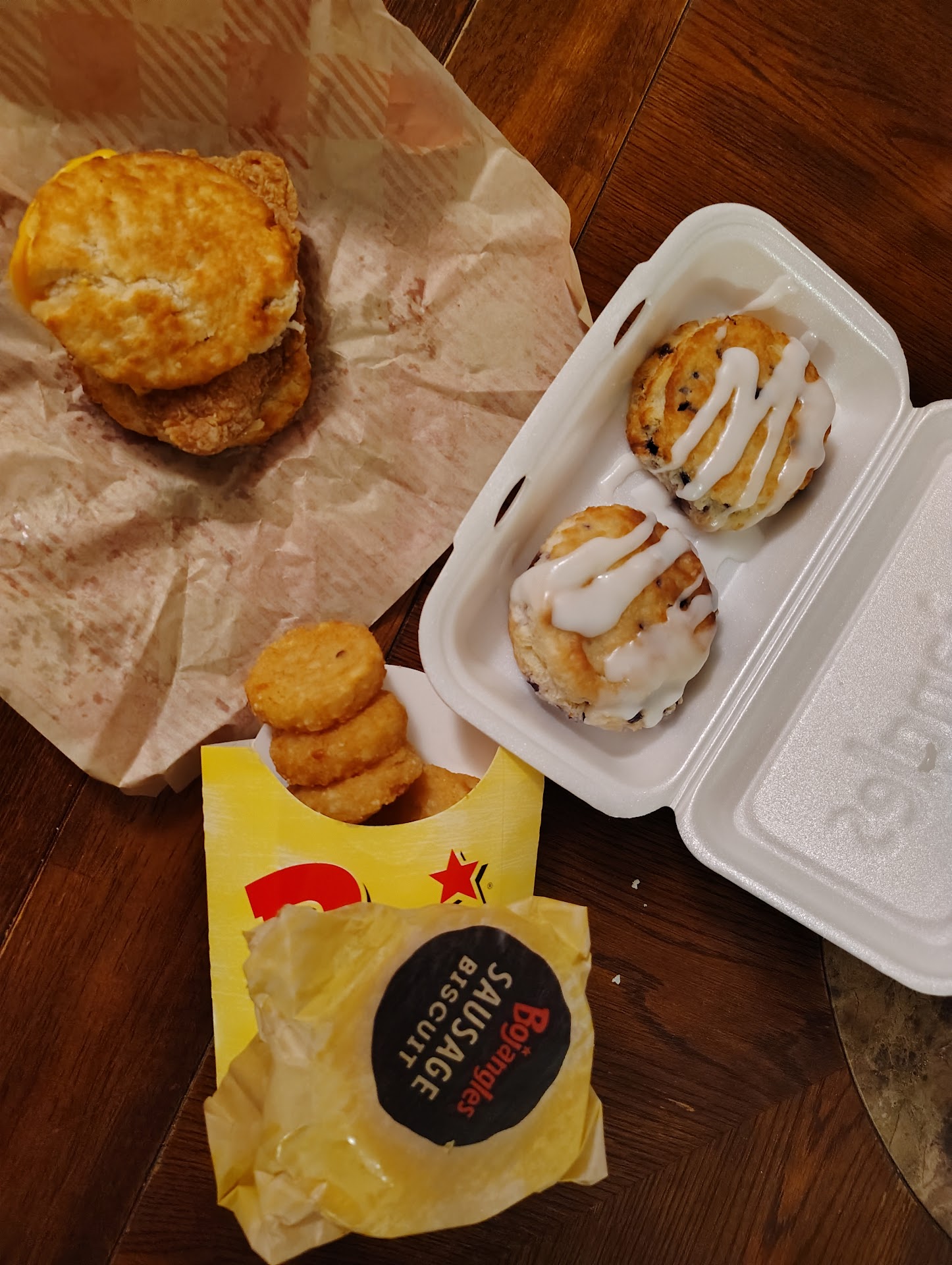 After waiting 35 minutes for our food, we received over-cooked biscuits that were tough and chewy. The Bo Rounds were half cooked, white on the outside centers, and cold. No straw with the large sweet tea.