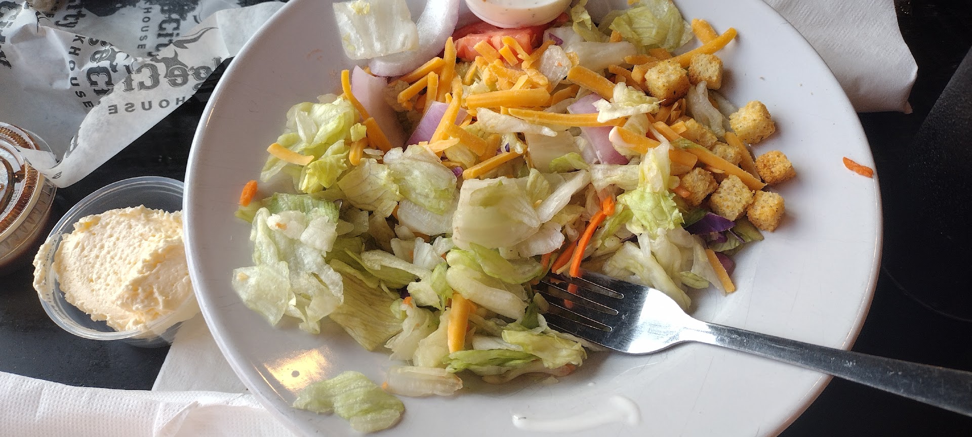 I ordered the Dead Eye Ribeye which is their biggest steak (18oz) and is priced at $29.99. I had fries and a salad. (Photos attached)