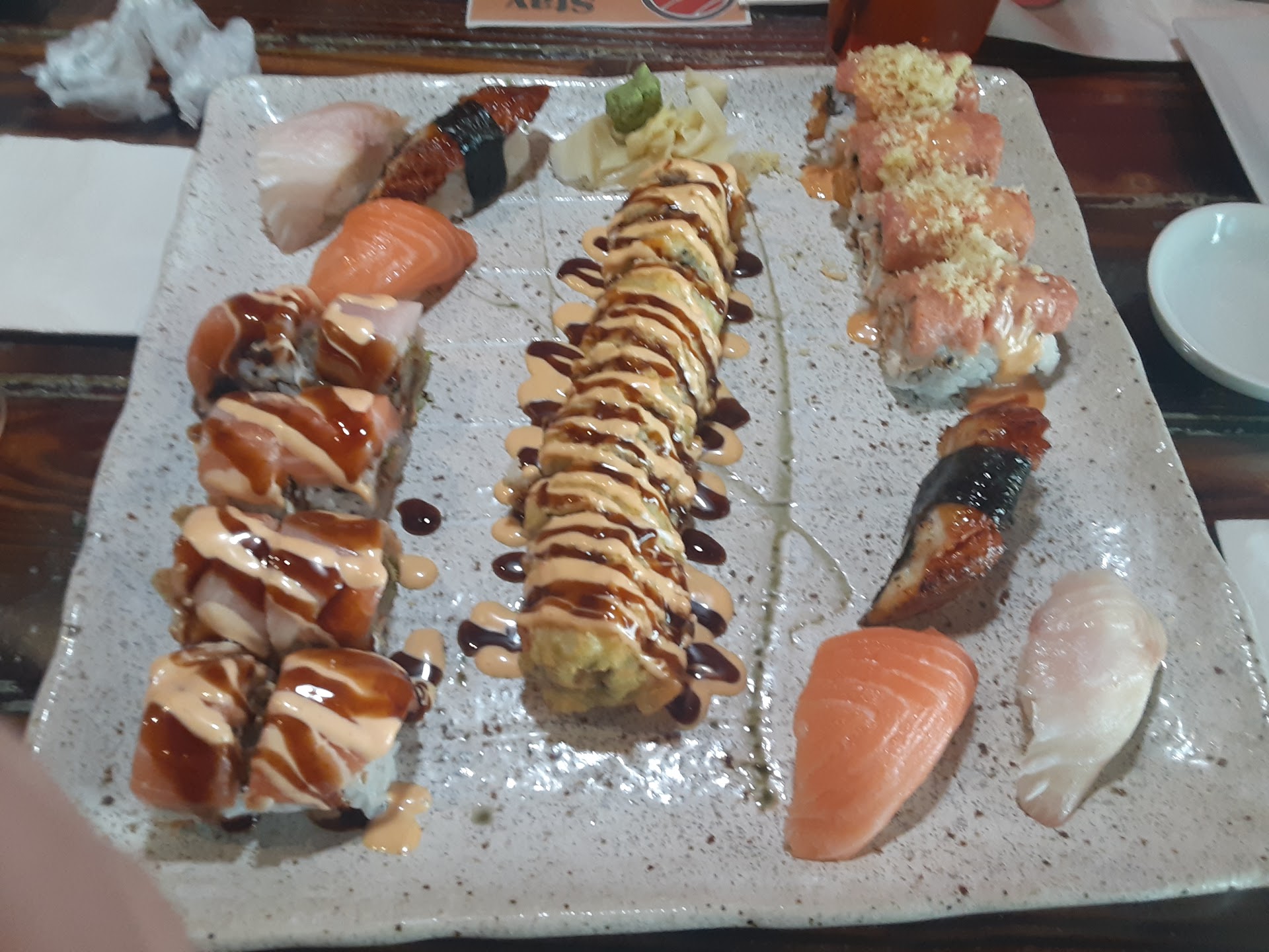 Read moreMy husband and I traveled to Virginia for our honeymoon, while in the area we decided we wanted some sushi. Food was wonderful, but you should get there the day before at lunch time to have your supper ready for the next night. Wasn’t a very large place and got busy very quickly. Didn’t understand why there were 4 females running one side that only had a small bar and 4 tables, and a male on the other side running the adult beverage bar as well as 4 tables, and answering the To go phone. Didn’t understand why there was a bus boy when the bar tender was cleaning the tables on his side. Took about 10 minutes to be seated and wasn’t even acknowledge when we went in. We were sat in a corner where I waited a while to even get a drink order. I kept telling my husband to stay calm because it must be extremely busy for such a small place. After getting our tea and water, we waited another 15 minutes to even order our food. While we waited we watched everyone order and receive there food and several tables leave. My husband ran out of tea and I had to ask the bartender when he got a chance if we could get refills, the one time he came over to let us know it would only be a few more minutes. The table sitting behind us had reservations at 6:30 pm ordered there food and within 15 minutes got there food.... BEFORE US. We waited a total hour and 20 minutes for just our food. Altogether we were here almost two hours. Very disappointed and although the food was amazing the whole experience ruined it, I will not...