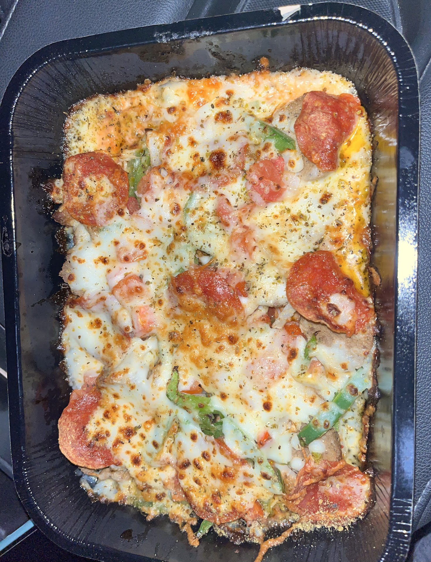 Got an order of bread sticks too, got home to eat and they're soggy from sitting in a pool of garlic butter. Absolutely disgusting.