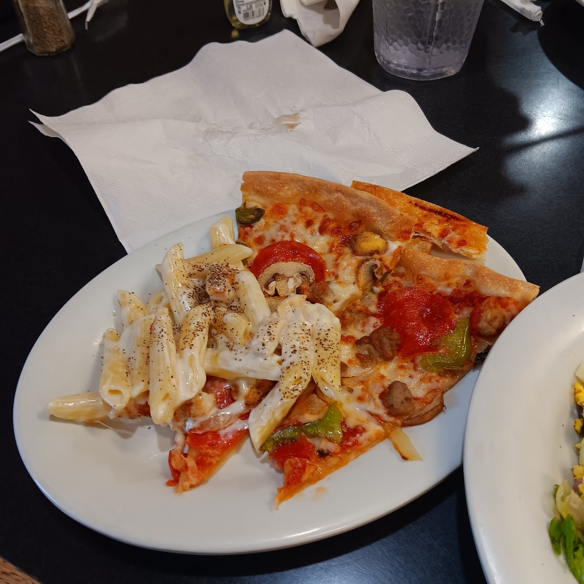 The last order I made arrived on time and warm, but all the toppings from one side of the pizza had slid to the middle, leaving bare crust...