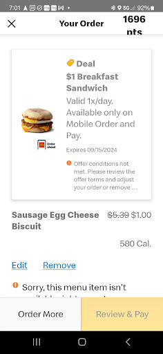 Ā Ā Ā Read moreThis McDonaldās on North River Rd is quite pathetic at times, not certain why they think itās fine to serve customers inappropriate food. Before driving off, be certain to check your food. Iāve gotten many Sausage McMuffins and the McMuffin is always hard as if itās been sitting for a few hours, this happened too many times and now I check each time, yes I had to give the food back telling them Iām not paying to get a hard McMuffin. Other times I always order my Big Mac without onions and lettuce, get home and everything is on it, had to drive 15min back to get what I paid for, exchanged and made a new one, wasnāt apologetic nor offered me a free drink for my troubles, nothing. Another time ordered another Big Mac same way only to get a hard bun, never ever apologetic. Iāve made many complaints about this location, seemed nothing worked. Now I drive out my way to go to another location which have not experienced any problems maybe once within 6 months Iāve been going. That N River Rd needs to just close, donāt know why they have managers.BTW Sausage Burritos are 90% of the time...