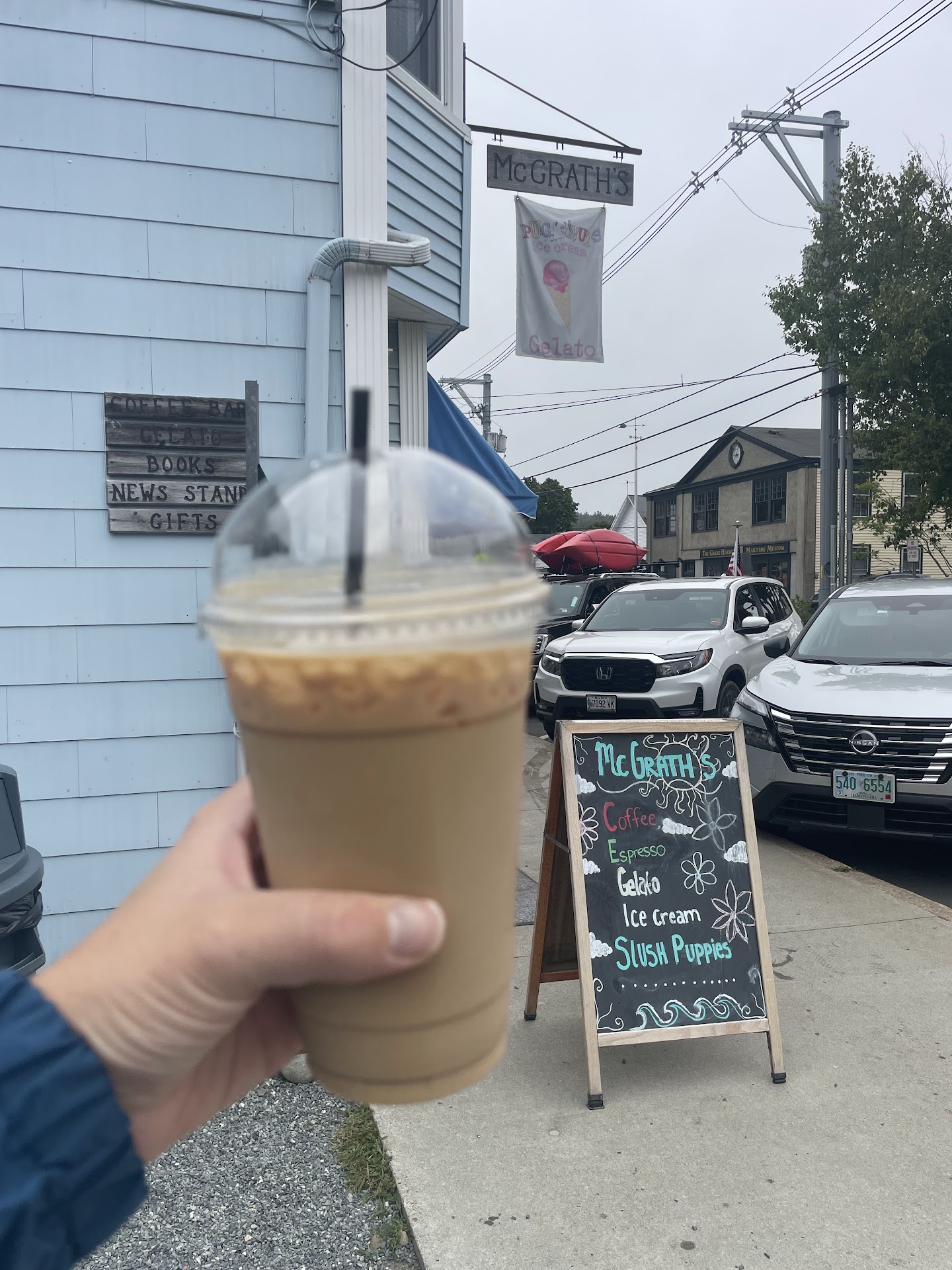 We were desperate for a good shot of espresso after a great ( non e-bike) bike ride through Acadia. After googling for a place and striking out in Northeast Harbor we saw the sign for McGrath's and walked in... and saw on the menu "affagato" and new we had landed in the right place. The gal who helped us was friendly and helpful. Lots of cute little things to stuff in a suitcase, though shelves were a little thin as it was the very end of the season when we were there. But my Affagato...