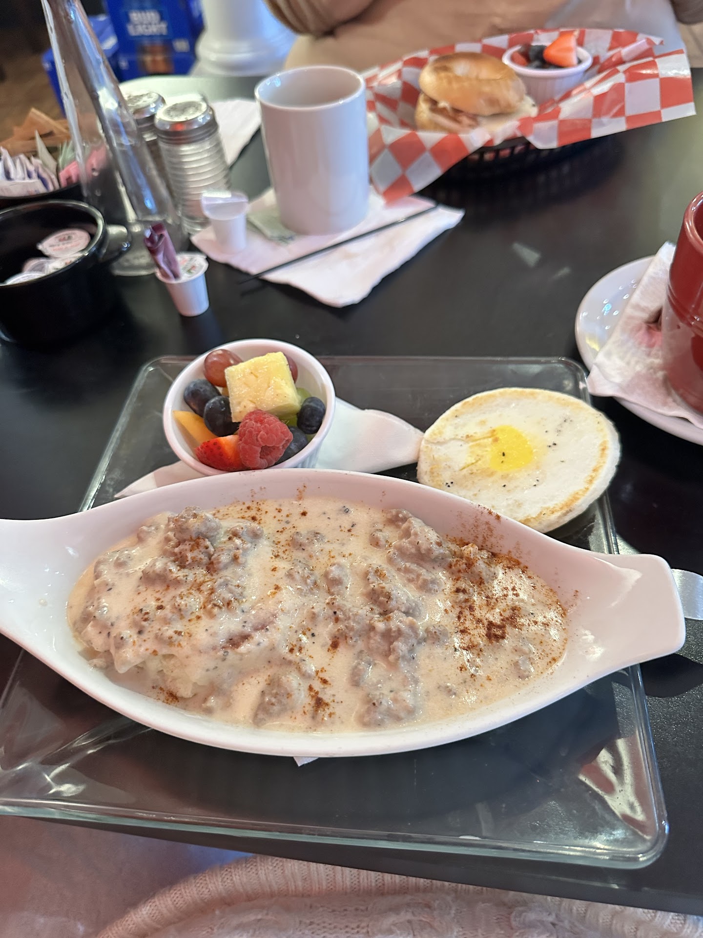 Read moreI went in for breakfast. The staff was okay. Greeted me just like every other staff would on a good morning. And then when I sat down after looking at the menu I said I wanted the asiago bagel with scrambled egg. Asked if there were jalapenos and asked for pepper, jack cheese and bacon. The egg shows up over easy or something like that, and I stated to the waitress. I want my egg. Patty scrambled. She says we don't do that. We eat it this way. We serve it this way. Mike, well, that's not what I ordered.... Her body language and ways imply that I need to eat this sandwich. I stayed. I'm not going to eat this sandwich. I don't like it. Can you make it this way? Oh we don't do that here. So now I paid $5 for an apple juice out of a plastic bottle that any child could get at Walmart. And didn't get a sandwich, but three of the staff looked at me like I was a terrible person. Well not a terrible person. I came in stated what I wanted to eat and wasn't informed. Otherwise. It's all on you and I will never come back to this restaurant again or recommend it to my fellows or family. Be more attentive when you speak to your customers and clients. Very foolish and should have offered...