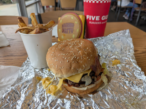 The fries? Hand-cut, fried in peanut oil, and served in heaps so generous you’ll be sharing (or not). They’re crispy outside, fluffy inside, with that golden, just-right saltiness. You can even go Cajun for a spicy kick. The vibe is no-frills—think red-and-white checkers and bags of potatoes stacked in the open—but that raw, honest energy is part of the charm. It’s not fast food; it’s good food, fast. Whether you’re grabbing a classic cheeseburger or piling on quirky combos like A1 sauce and pickles, Five Guys delivers a burger experience that’s indulgent, customizable, and consistently...