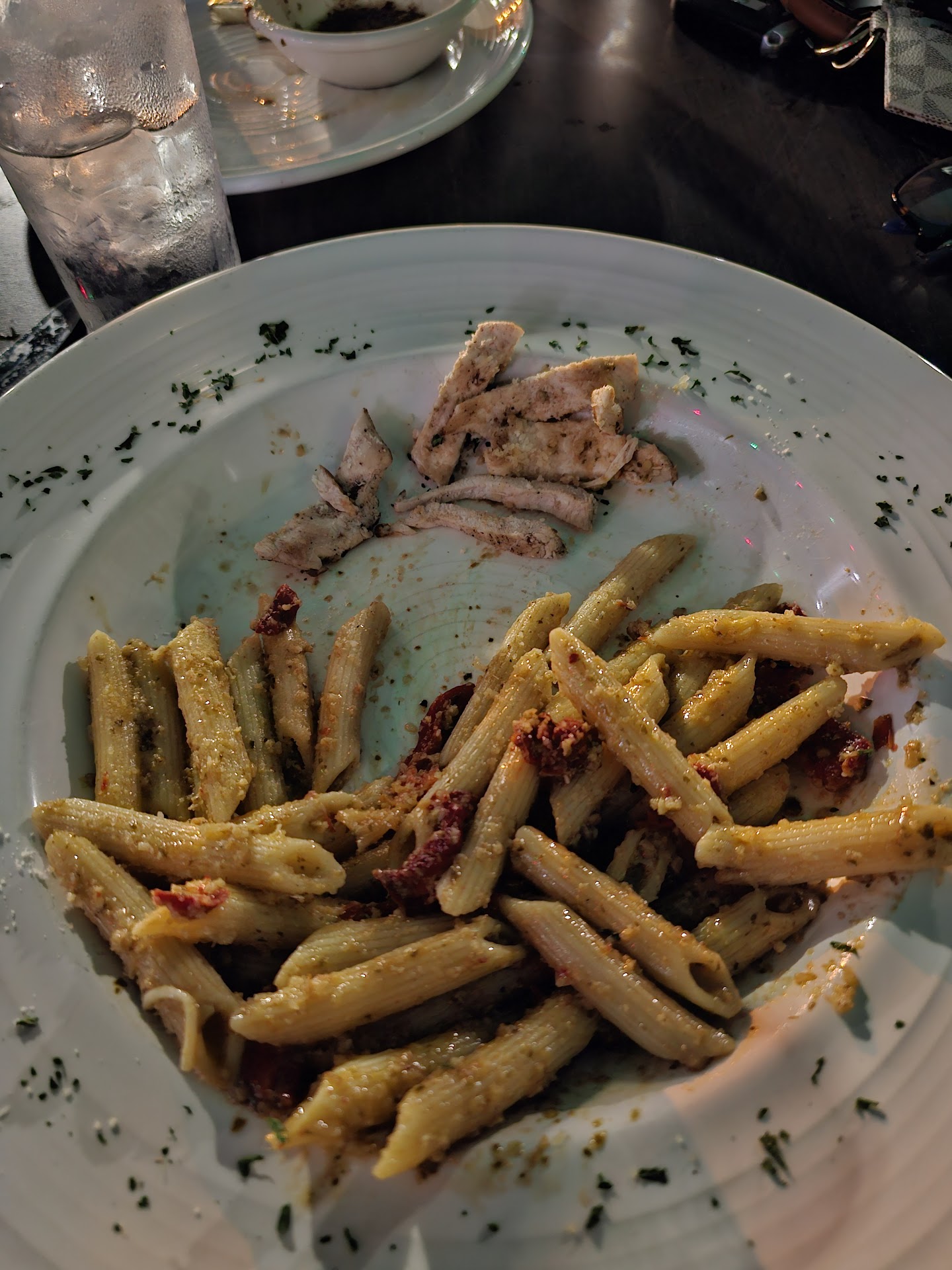 Shortly after finishing my salad, our entrees came out. They presented well, if not a little under-portioned for the price (in regard to the Mediterranean salad). Upon further inspection, my penne and meatballs entree seemed to be very overcooked (like it had been cooked quite a while ago. The penne was, to me, way too soft. Iâm sure a lot of people like this, but for me, if I press my fork into penne, I expect it to piece through it versus acting like a wet spaghetti noodle and depressing. The meatballs were the worst part though. I thought initially just based on looks, that the meatballs seemed a bit solid, ie overcooked. I decided to split the meatballs with my fork. It was very hard to even cut them. The inside was fully cooked however and I decided Iâd try them. I made it through probably a third when I suddenly was feeling like I was going to gag. I decided to let the server know. He was very apologetic and I told him I was willing to pay for the pasta I ate, but the meatballs were way overcooked and inedible. They checked them in the back and the server said they agreed with me. I still ended up paying $20 instead of $25 for penne and marinara.