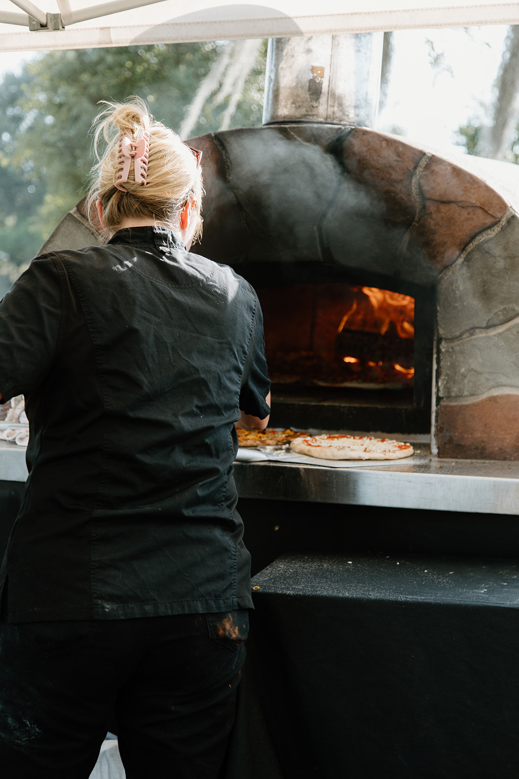 Our wedding menu featured delicious bruschetta and meatballs in marinara as appetizers during cocktail hour, followed by a Caesar salad and a variety of pizzas. We offered classic cheese and pepperoni, as well as unique options like pepperoni with pineapple and goat cheese, The Soprano, BBQ chicken, and a sausage and peppers pizza. Our guests absolutely loved all the selections! It was clear that each dish was crafted with fresh ingredients and cooked to perfection!