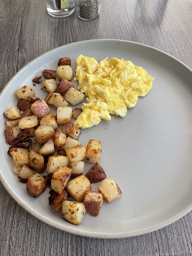 We ordered pancakes, and enchilada, a scramble, and SOS. The serving sizes were laughable for the SOS and the scramble. The enchilada was a nice size but the egg and bacon were more of a suggestion as the entire thing was just potatos and it was barely warm. The pancakes were delicious, but the syrup included may as well have been served in a thimble.