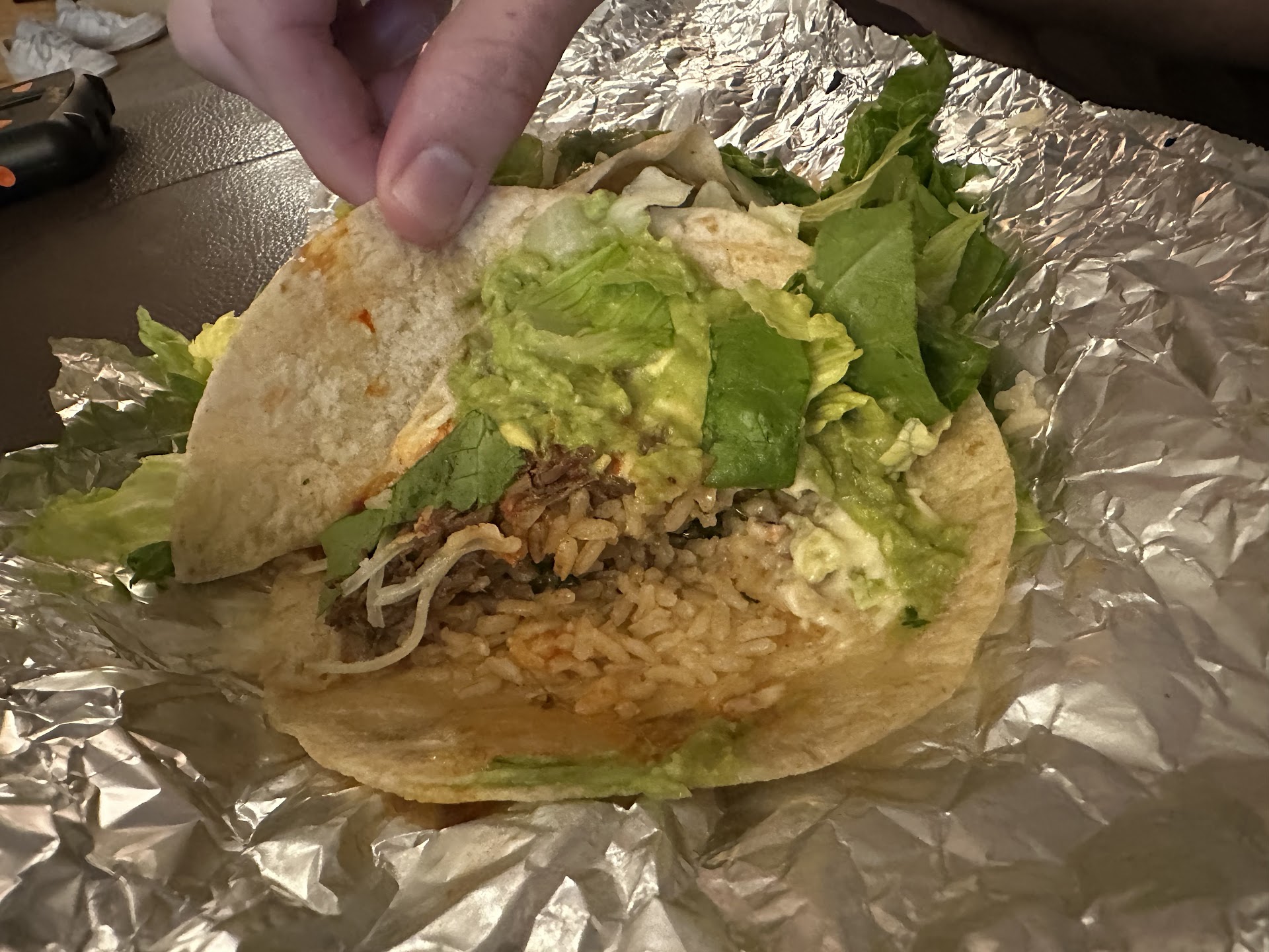 Would you feel good about paying extra for a taco that’s essentially rice, guac, and lettuce—while being upcharged for a few scraps of pork? I called the store to discuss this and found their voicemail was full. Judging by recent reviews, this is a recurring issue, and management seems unbothered.