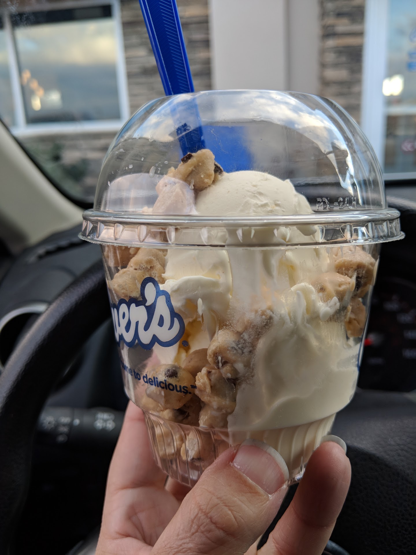 The food came out in about 10 minutes. We ate in the parking lot and were both seriously impressed. My boyfriend practically inhaled his food and gave it a thumbs-up. My burger was super tasty — you could tell the ingredients like the red onions and pickles were fresh and high-quality. The presentation was great, too — it looked like someone really took pride in making it. And the concrete mixer? Phenomenal. I’m not even a big chocolate person, but I devoured the whole thing.