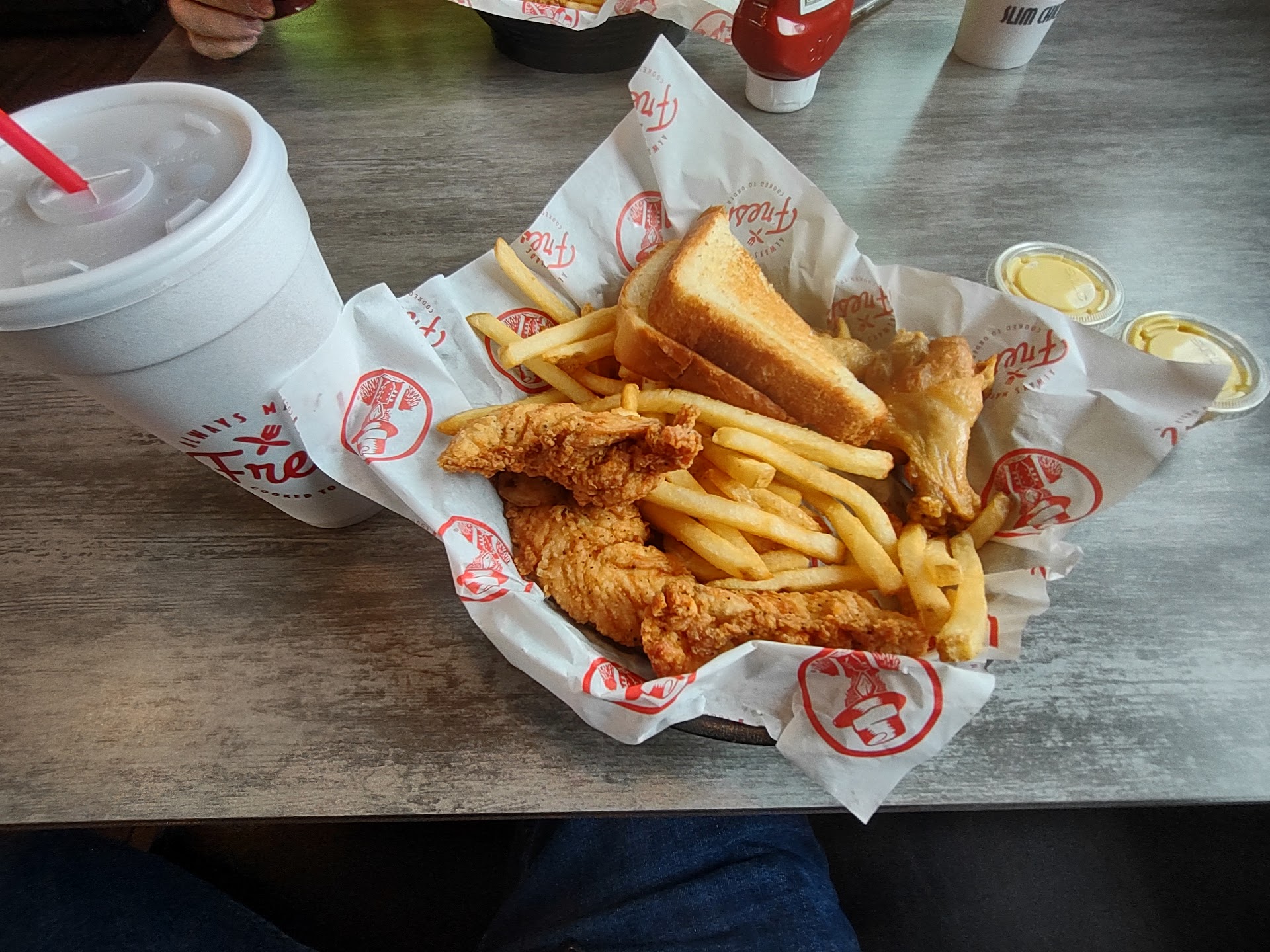Itâs sad because honestly the chicken is good. Not great, but itâs good. You donât need a dipping sauce to enjoy it, and that says something. The fries are a different story; basically dipping sticks for your sauce cause theyâre pretty nasty without them. The toast is ok, their deserts meh.