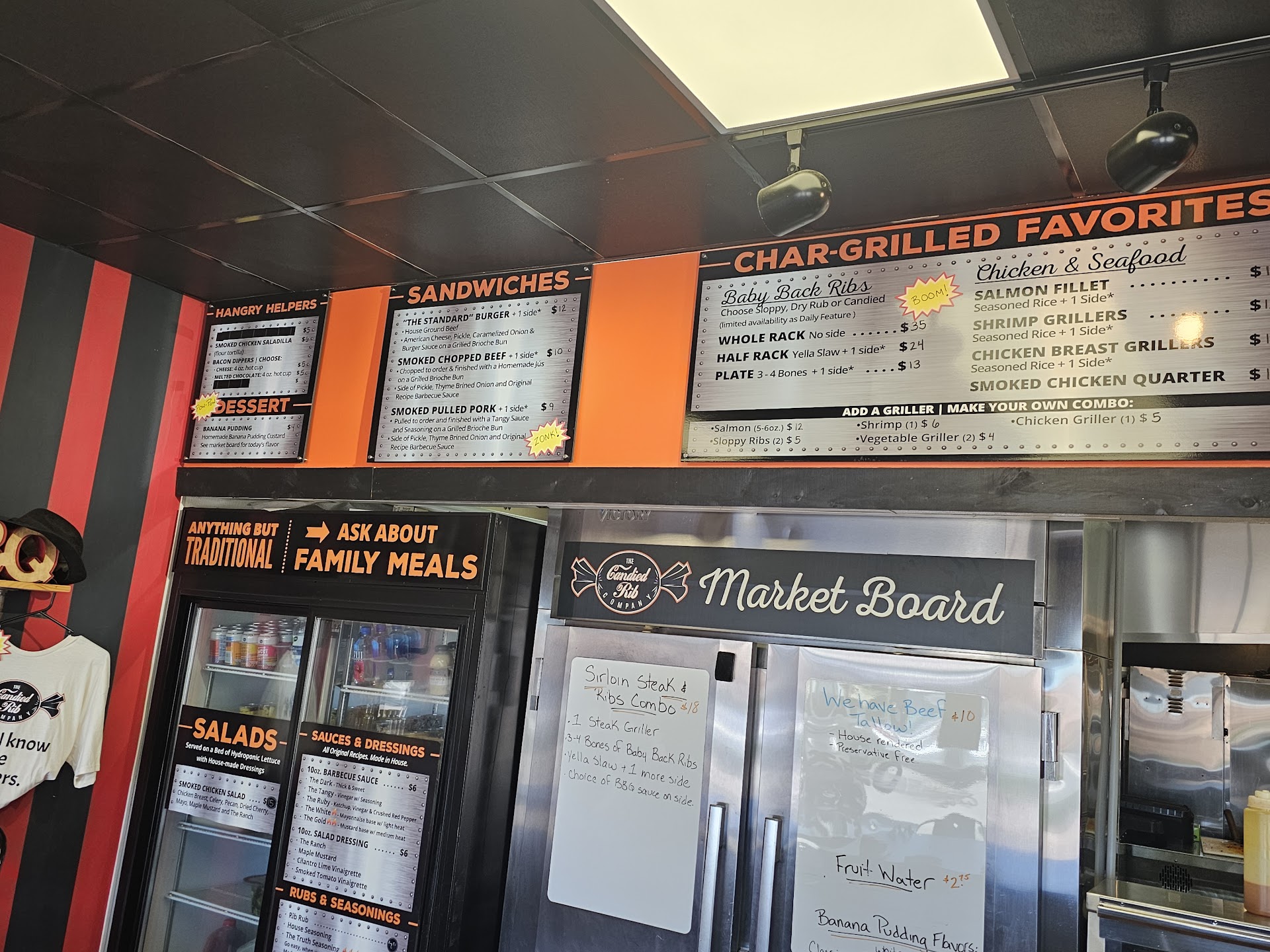 Read moreTHE HYPE IS REAL. Listen, I get it - Texas, Carolina, Memphis - there are different dialects to BBQ. This is probably THE BEST BBQ I’ve had and I’m a foodie from Texas. Vibe: I entered their shop to find it very cute but small. There are only a couple of tables but enough room to sit down, if you so choose. What struck me as heartwarming was this looks to be family owned, so the kiddos (who were very well behaved) were tagged in for drinks, condiments, sides, etc. Big win for me on so many levels. Ordering: Lisa was taking orders and she has to be the cutest thing ever. She put up with my billion questions with patience and we even had a few giggles. I settled on their ribs “candied” (also available traditional saucy or dry rub) with the grilled potatoes. Also, good luck not ordering EVERYTHING. Taste: You’ve heard of “slap yo mama” good - take that and multiply it. There’s actually flavor - the Cole slaw, the sauces, the ribs - you can tell this family loves what they do and wants to share that enjoyment with their product. There’s actually flavor!! The slaw is unique to anything I’ve ever had, and not tangy nor sweet but seasoned. The candied ribs are to die for - that kiss of smoke but actually tasting the layers of flavor in the meat. And these potatoes! Not basic whatsoever.