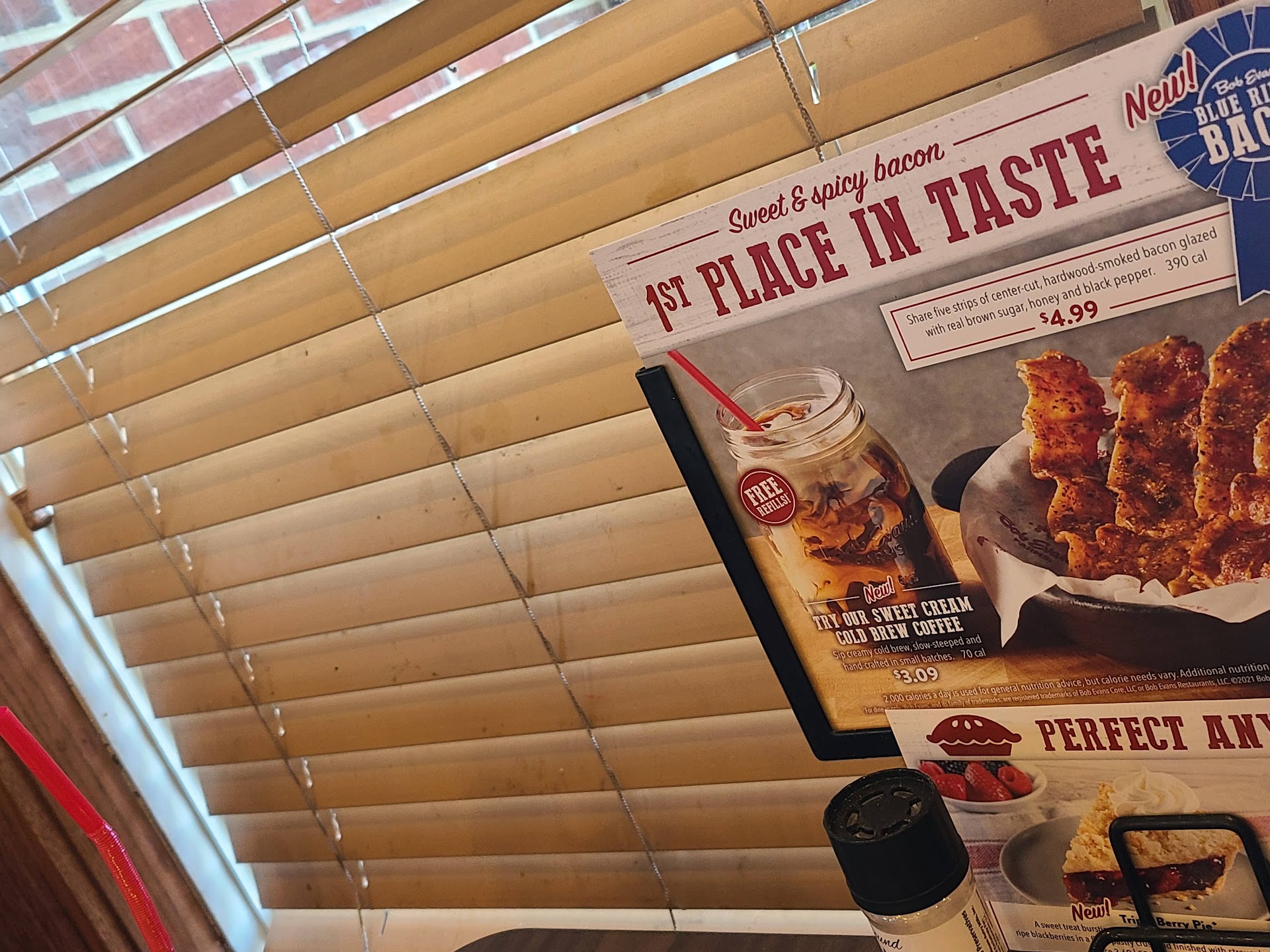Our "food" comes and it was disgusting. Chicken tenders were dried out and stale, steak? Ha! What steak, but this little piece of meat I reiceved looked wretched. My wife's salad had bacon in it and we just had enough.