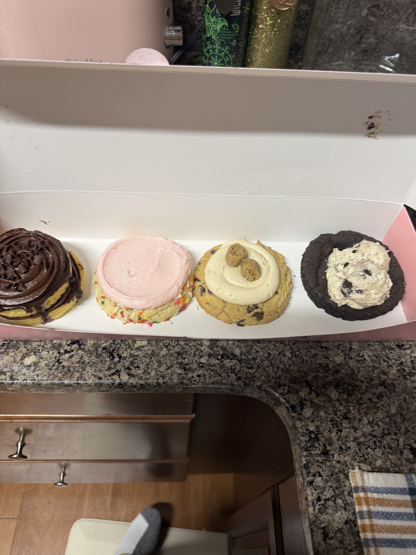 Read moreToday 6/17/24 I ordered 4 cookies and to my surprise when I arrived they I checked in on the app and it states there was 19 people in front on me normal for a Monday night. Then all of a sudden it said my cookies were ready, the store was packed so I waited to pick up my cookies cause in my mind I said impossible that my cookies were ready that fast especially since 19 people were ahead of me. Once I finally went inside I waited until everyone ahead of me spoke to the one female staff and then I walked up to the counter and stated that I was there to pick up my cookies, the staff asked for my name and I stated it and she then proceeded to tell me that my cookies were unavailable. So confused I asked her how are my cookies not here if the app stated that my cookies were ready. The staff then stated we called your name and no one came… so I asked her so you just gave my cookies away? She stated yea something like that but I can give you a refund. I just think it is really crazy that they give away cookies that people paid for when there are no more cookies, it’s actually sad because I...