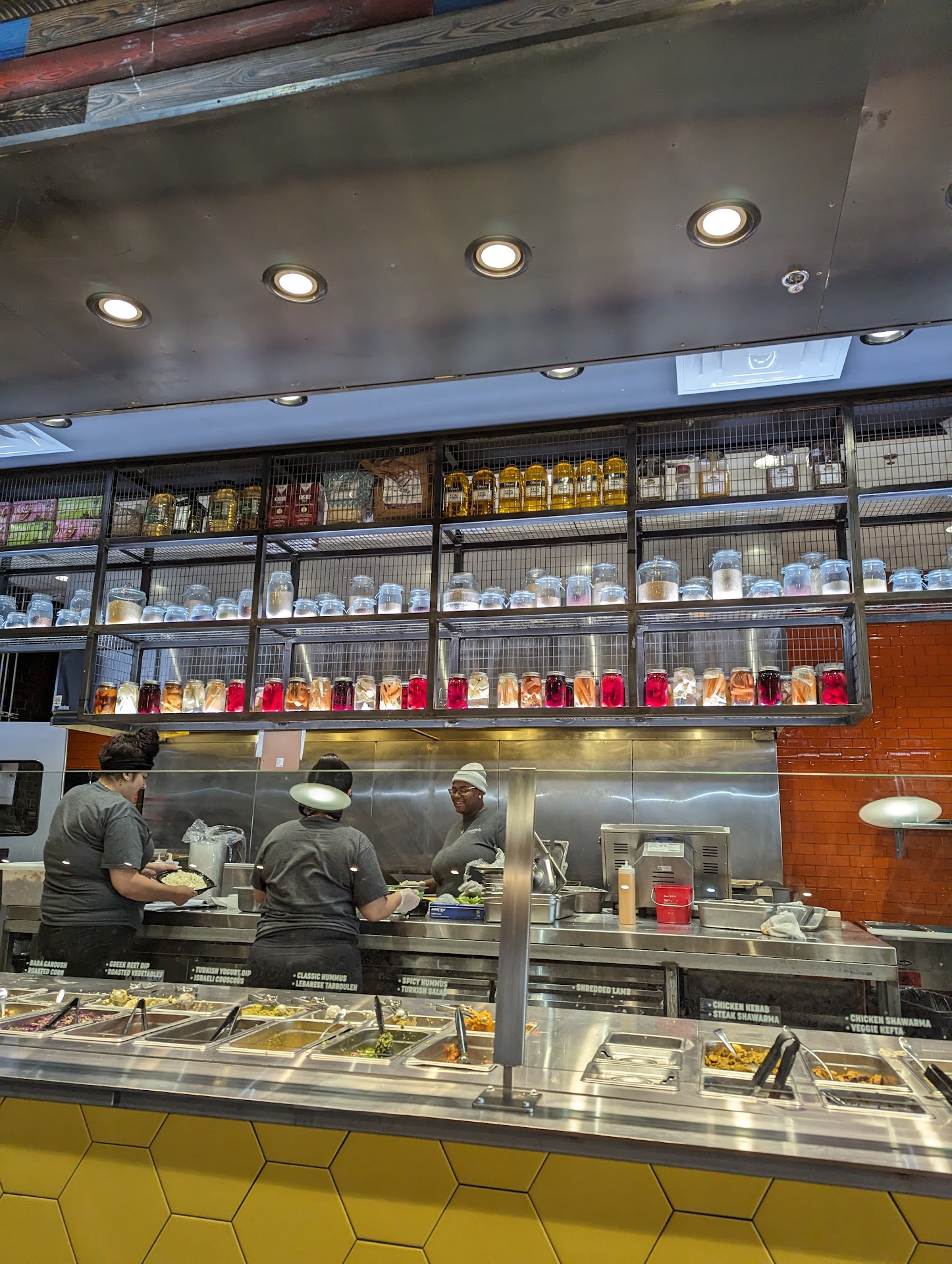 Ordering online does not let you know if any of the ingredients are not available. This is what prompted me to write this review today. I ordered a "classic shwarma" wrap. For context the following items are in a chicken shwarma wrap: Greens, chicken, turkish salad, pickled onions, some sauces/hummus, and naan. I arrive (10 minutes after the estimated pickup time because the website doesn't care about my time and after I have been notified that its ready for pickup already) at the restaurant and am told that the chicken is not ready, but will be ready in 5-10 minutes as its on the grill. I think "it is what it is, it is not the workers fault" so I say sure I'll wait. Chicken finishes cooking, and when my order is prepared I am told that there is no turkish salad or pickled onions available. So for context the ingredients that were even able to be served to me at the time I was notified that my order was ready are the following: naan, mixed greed, hummus/sauces. On the other hand the chicken, turkish salad and pickled onions were not available. The workers in the store were unable to cancel my order (which it is still very bad if I waste this much time sitting in the restaurant and have my order canceled), so I got a wrap that was terrible due to me trying to substitute other items to fill the same role in the wrap.