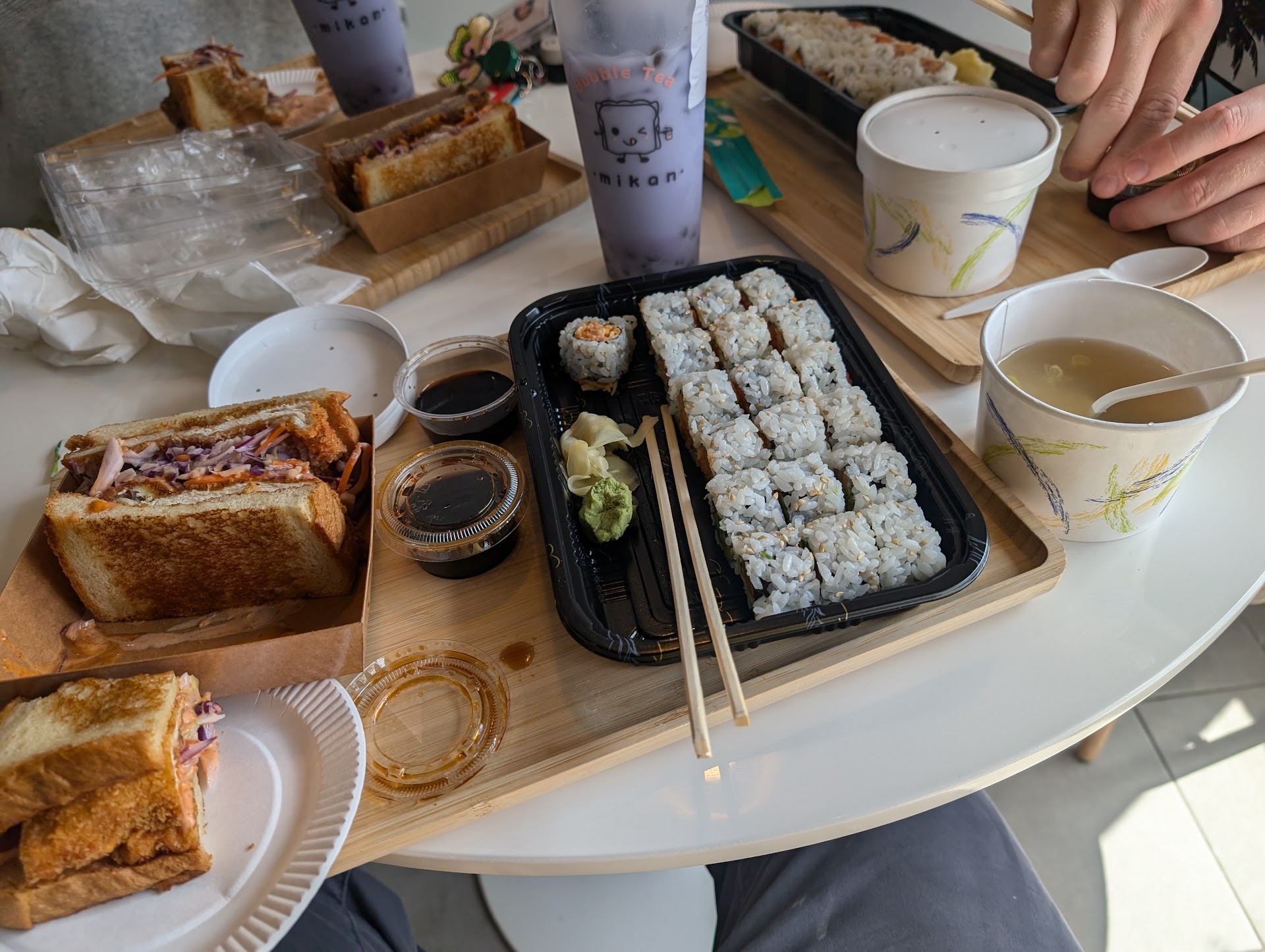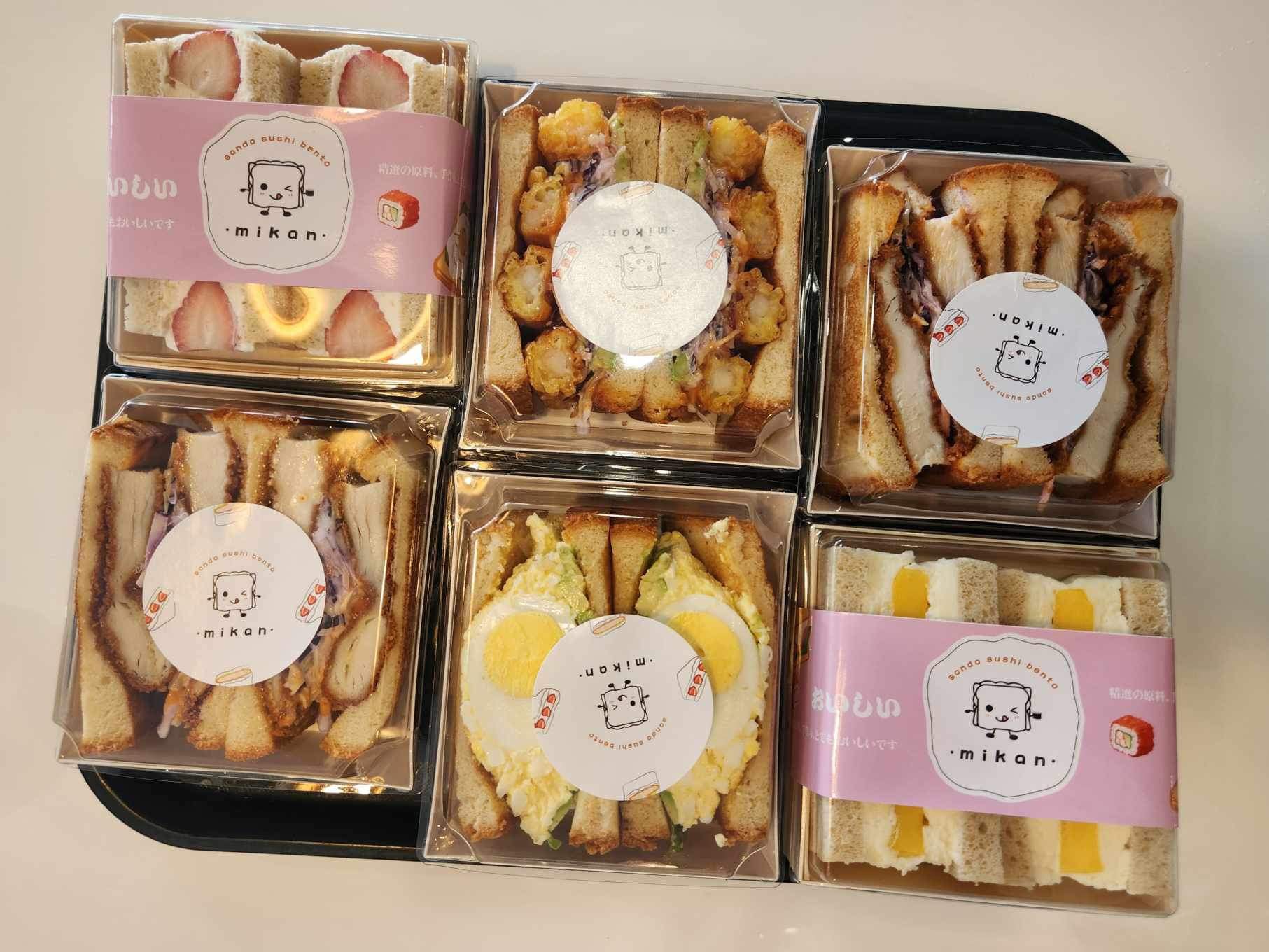 We got 4 protein sandos (2 chicken katsu, 1 shrimp katsu, 1 tamago), 2 fruit sandos (mango & strawberry), 1 chicken teriyaki bento box & 1 sushi deluxe entree.