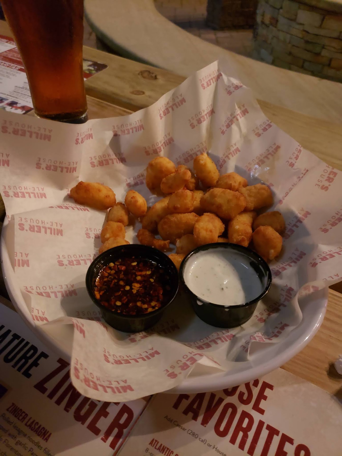 CHEESE CURDS- AMAZING!! this is the best appetiser I have had in years! the size is perfect for sharing with your date. they serve this with a RANCH and a spicy HONEY sauce, and the honey sauce is pretty awesome, so much so that we even drizzled on some of our main dishes.