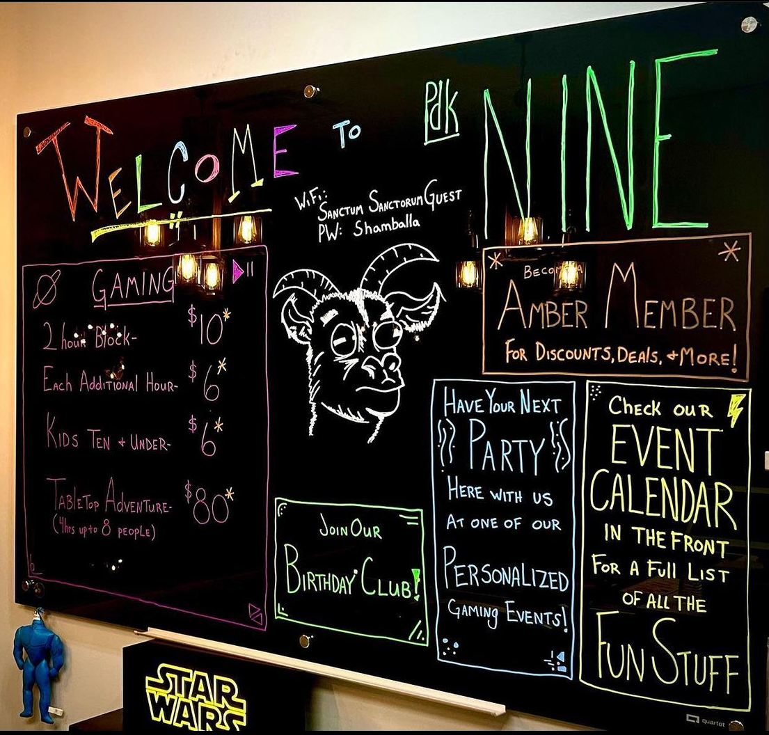 Read moreMy husband and I really enjoy gaming cafés, and exploring new board games. We found a hidden gem with this place!! PdkNINE is such a great spot to enjoy a fun night out. There are so many things that make this our new favorite date night locale! There a dozens of new games to try, there’s a sweet little café to enjoy treats while playing new games, the atmosphere is really cozy, and added bonus- the owner Joe is the absolute best! My husband and I always feel so welcome when we go. We’re very grateful to have Pdk NINE so close to home, but even if it wasn’t, it would be worth the drive!...