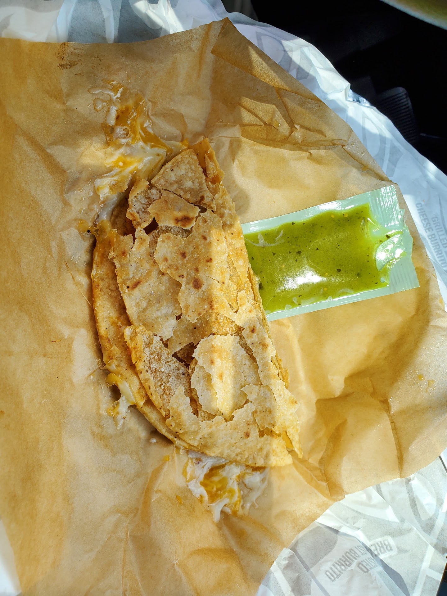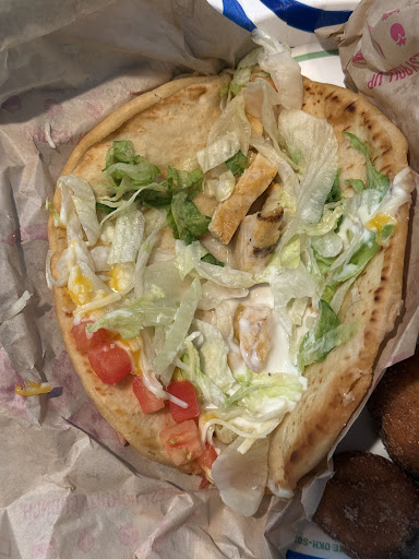 Read moreWe ordered pick up through Uber Eats, went inside because the drive through line was so long. It took five minutes for anyone to acknowledge my presence and, despite the UE app saying that my order was ready for pick up, I waited further while they prepared my food. This alone would have been fine, I get it that it was busy and I know how to wait my turn. However, when I checked my bag in the car, I found they had forgotten the quesadilla; I went back inside and was again not greeted. I asked an employee at the counter, who had looked at but ignored me, if she could help me get the quesadilla for my order. I watched her go to the kitchen, tell another employee, and the other employee took a quesadilla from another bag of another order that was in the prep line. Having gotten our complete order, we went home and were disappointed again by the soggy tacos. They were crunchy up top but literally everything fell out the bottom whenever we picked up a taco. The quesadilla that almost wasn't, was filled with cold cheese and was pretty dry from the scant jalapeno sauce inside. The nachos, which were the only reason we had ordered in the first place, were stale and also soggy. An all-around...