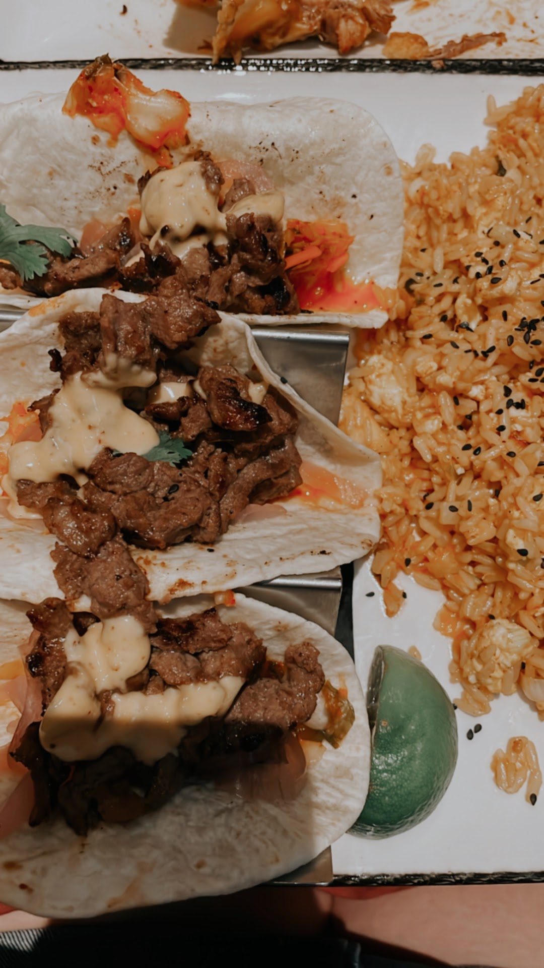 Read moreIâm leaving this review mostly so they maybe can fix this issue because we really want to see this place succeed because the menu looks promising and it would be nice to have a good option close to home. And I write this knowing itâs new and needs to work out the kinks. The service was just not good though. Our food was delivered to wrong tables all evening. People kept coming to our table with food and drinks that werenât ours. The back waiter frustratedly said within earshot of us âshe needs to stop swapping the tablesâ so I think someone wasnât inputting orders to the right tables maybe? The table behind us got our appetizer (nachos) and even though it was not what they ordered they ate them anyway and our waitress didnât notice it until we brought it to her attention 45 minutes later when she circled back. My husband couldnât get a refill on his soda in a timely manner to the point where he finished his meal by the time he got one. The nachos when they did come out were wrong and had no toppings on them except cheese and olives. We were told by the manager that we got another tables order and they had ours. Thankfully they did comp us the nachos given the mix up and the long wait time. His meal (BBQ pork Mac n cheese) was very good! Sadly, my bulgogi tacos were flavorless and just not good. The menu says Korean short rib? But what comes out is basically unseasoned, no sauce like traditional bulgogi, cut steak on pickled onions and like a hot sauce of some kind. The kimchi fried rice had zero flavor and large chunks of egg just sat on top. The half priced sangria was also not good. It just tasted like iced watered-down wine which is usually not the case for a white sangria which is sweeter. I felt bad for our waitress she seemed flustered and I get being new. So hopefully maybe we can try again in a month or so and things will be differentâŚ. Tough to swallow a $50 bill (would have been $77 with the nachos) when the experience is...