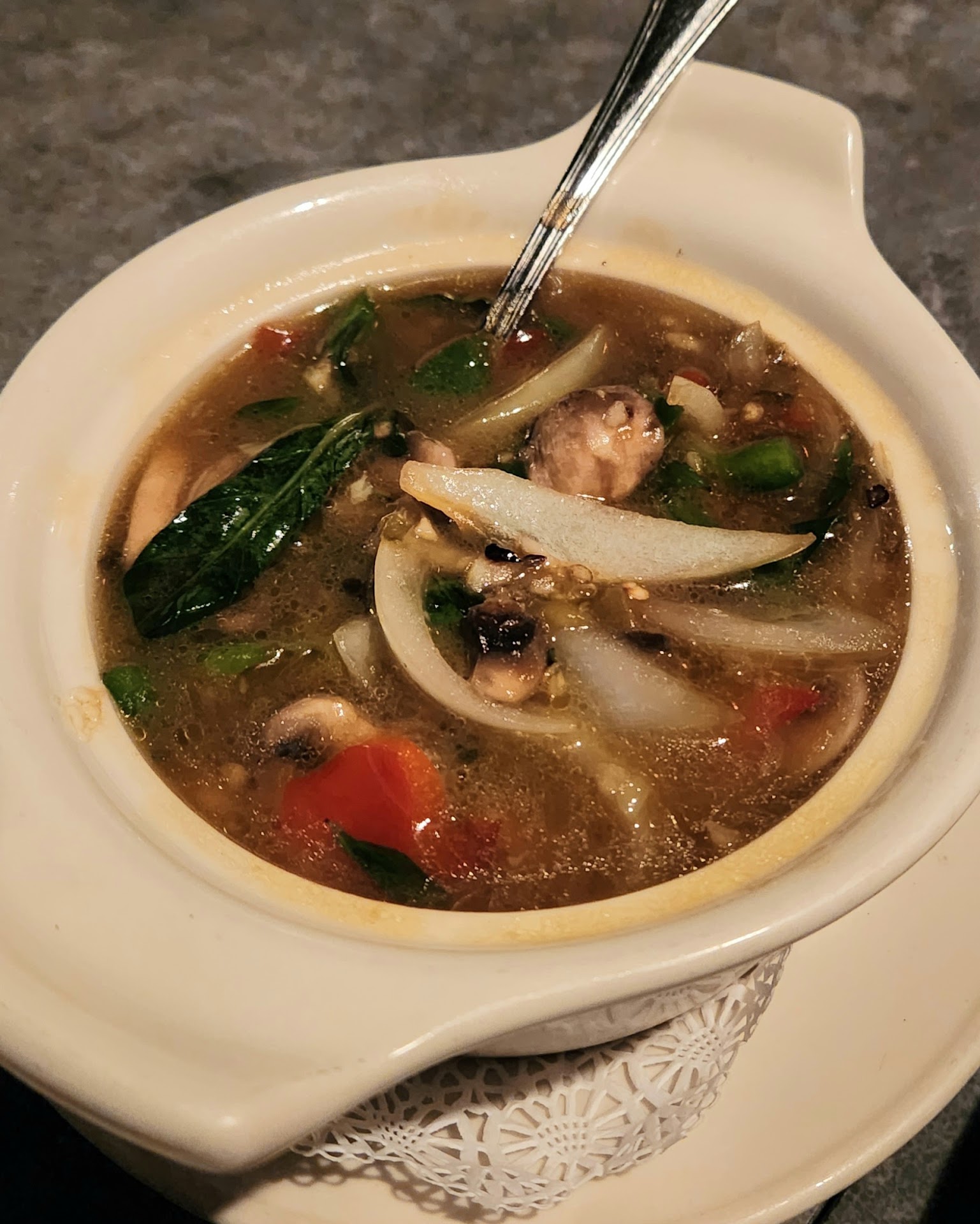 I very rarely leave negative reviews, I love all of the restaurants here in Charleston. However, I specifically looked at the menu ahead of time and then inquired as to whether or not the dishes marked vegetarian contained ANY chicken, beef, fish, or oyster broth. I asked the waitress to check on this for me, and was given bad information. Luckily, I received a response to a snap I posted from a friend that said "careful, almost everything there contains fish sauce". I pulled aside a different waiter, who in fact confirmed that I would need to change my order. The whole thing was super uncomfortable for someone just trying to have a nice evening out and not be "that friend" with the food limitations. A restaurant with a large tourist base and as many locations as Basil should have comprehensive training for their staff, and really shouldn't market themselves as a vegetarian friendly...