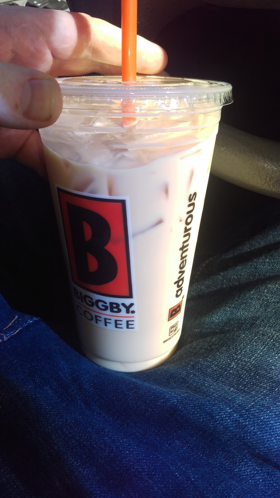 Read moreCheck out the iced coffee I just got! I just got back from a coffee run and felt compelled to write this, which I never do, but I drove all the way there just for this coffee and it's kind of funny. I've been to this Bigby an infinite number of times. I ordered an iced coffee with cream, as per usual, and this is what I got. She handed it to me. I started to drive away, but then put it in reverse and even made the car behind me reverse after seeing the coffee, trying to talk to the girl that handed it to me. I said to her "I don't think this is what I ordered", which she replied "yes it is". I held it up saying "THIS? THIS is an iced coffee? An iced coffee is THIS white?", showing her that the drink had been bleached, begging her to admit it and take responsibility. I would've been ecstatic with a new one. She refused, and goes "well, I put cream in it" haha.. yes, I can tell you put cream in it. I don't think there's coffee in this drink, is how creamy it is. I mean, there's not even a hint of coffee. It might be hard to see, but it's pure white, which is how it tastes. I got iced cream. It was a wasted trip, and wasted coffee. FWIW usually the place is great. I was a regular for...