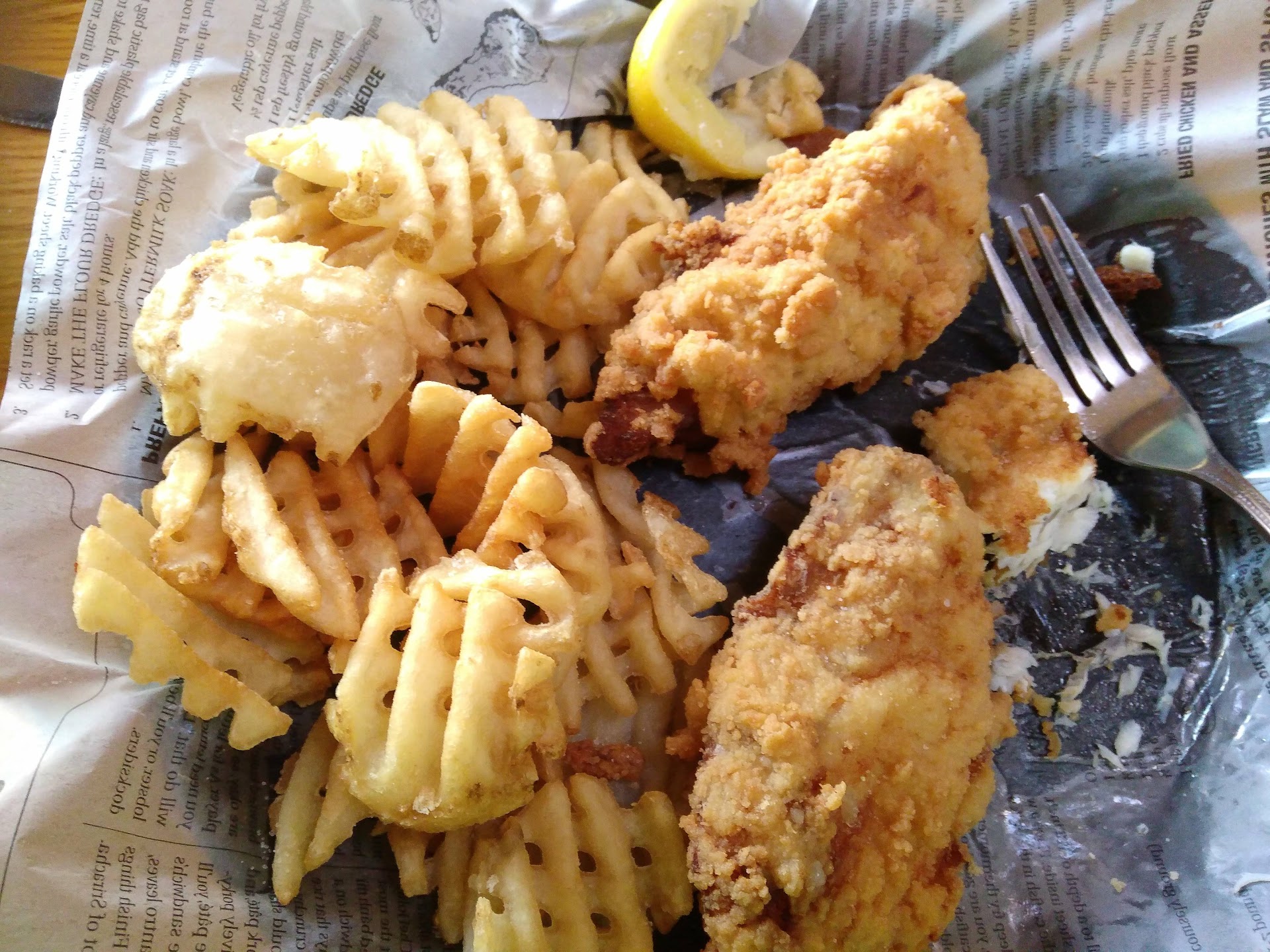 Went there in a Friday night with a party of 4. Service was fantastic. Waitress was incredibly friendly & attentive. Really enjoyed Brianna as our server. One of the ladies at our table had cheesecake & said it was delicious. One of the guests had the pulled pork sandwich, said it was great, but the bun got soggy, so she only hate about 2/3 of it. It was a fairly good sized sandwich filled with pork tho. Other guest at my table ordered a chicken type salad (can't remember the name), but she ordered it without the blue cheese. It was a massive salad in size! She took over half of it home as it looked like she hasn't even made a dent in it while eating it, but said it was absolutely delicious. She ordered a Rhine Wine, that was $7 for about 1/3 of a glass & returned saying it didn't taste right. I ordered the Fish & Chips (it was Friday night), ordered it breaded with waffle fries. Received 3 large pieces of fish, coleslaw, 2 pieces of marble rye bread. It was delicious, loved that the breading was very light. When ordering the fish, you have the option of coating: panko breading, beer breading, or original breading. I chose the original breading. Pic of my meal attached (after I ate one of the fish pieces). It was a great dining experience. On a busy Friday night, we got in with no waiting. Overall, dinner here was a Success & we will...