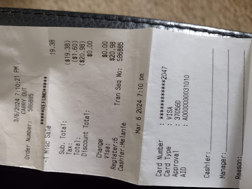 I came through the drive thru at 2pm. Today 6/11/24 they were moving pretty fast, as I got closer to maybe 3 cars bk I noticed the lady (maybe u all call it car hopping) was leaned inside someoneās car! Literally her head was in the car and she started going back and forth from inside to the car maybe 3 times. My son said āmama do u see that lady inside there car? You would not allow your crew to do that (I am a Gm as well) I pull to the window and sat there I know 7-8 mins before she came and asked my name, another 5mins-8mins she came bk and asked what did I have. She never came bk for another 5mins-8 asked me to pull up, i politely said no Iāve been waiting 15-20 mins already. She turns around leaves I sat another 5mins and a skinny African American girl with a huge wrap around her head comes and ask me to pull up again, letās remind u I have yet to even receive my drinks! They walk off and pretend to be doing my order and came back and a manager was with them, she asked if I could pull up, I politely said no Iāve been waiting a while for my food, she then go in and looks up and shook her head, she immediately started telling them we canāt make her pull up because itās on us, I called her(Felicia or Felesha to the window and asked if I could at least get my drinks, I couldāve pulled up and sipped while u all prepared the food but I donāt even have that. She apologized and explained to me the same as she explained to the crew. This turned into a 5start because of Ms.felicia or Felesha! She had great customer service, she was nice, pretty, appropriate,approachable and nice! She apologized again and my son said mama she need to work for u!šŖš¾šshe brought me 3free item cards. It was 2:47 when I left and I didnāt care because she was alright! I donāt live in town,but when I do come I will come back! Thank u ms.fee fee u are...