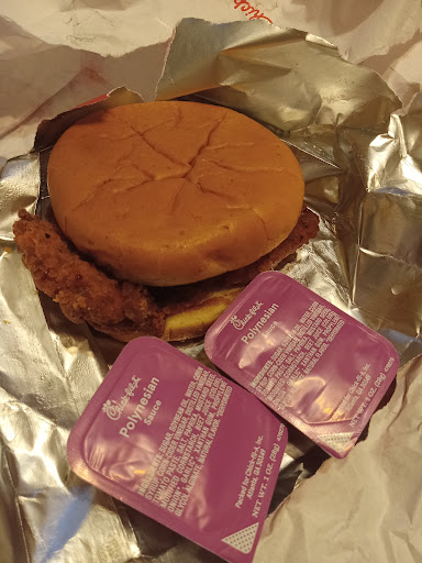 My girlfriend and I love Chick-fil-A and they're delicious š§ š. The service was good! Our cashier seemed a little peeved off.... However, the flowers even though half alive, were very pleasant. But even though the flowers were so pleasant, we noticed a dark cloud on the horizon....