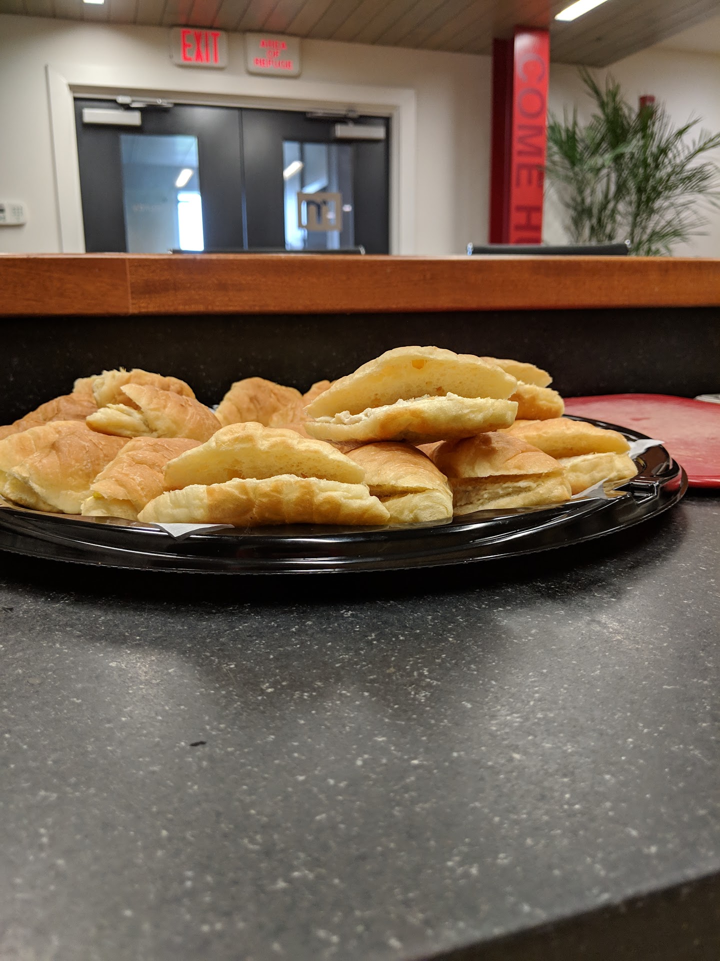 The catering however, was not very good. They were mini croissant chicken salad sandwiches and there was hardly any chicken salad on them, it was just basically all croissant. Most of them didn't get eaten, people just ate the sides.