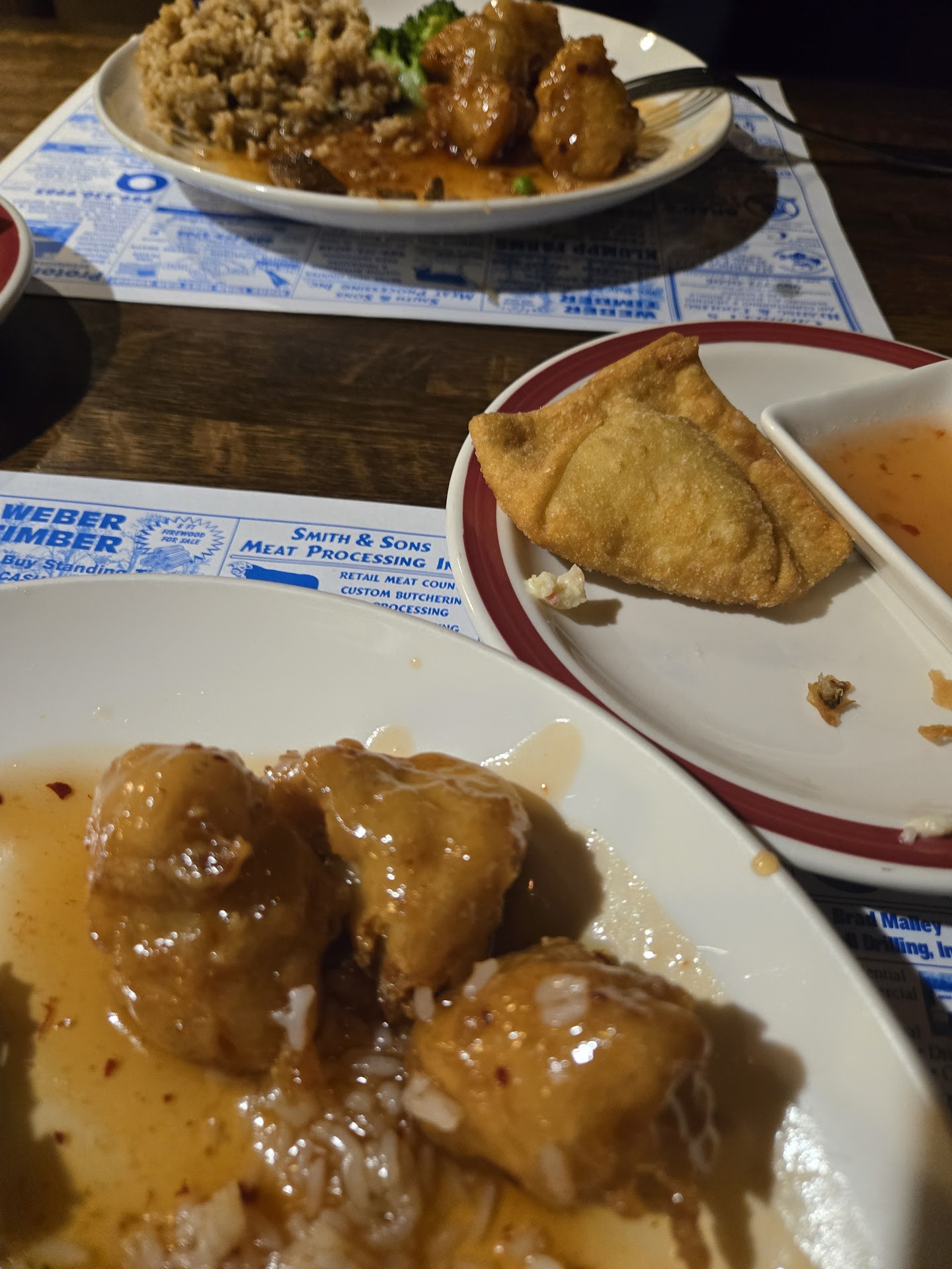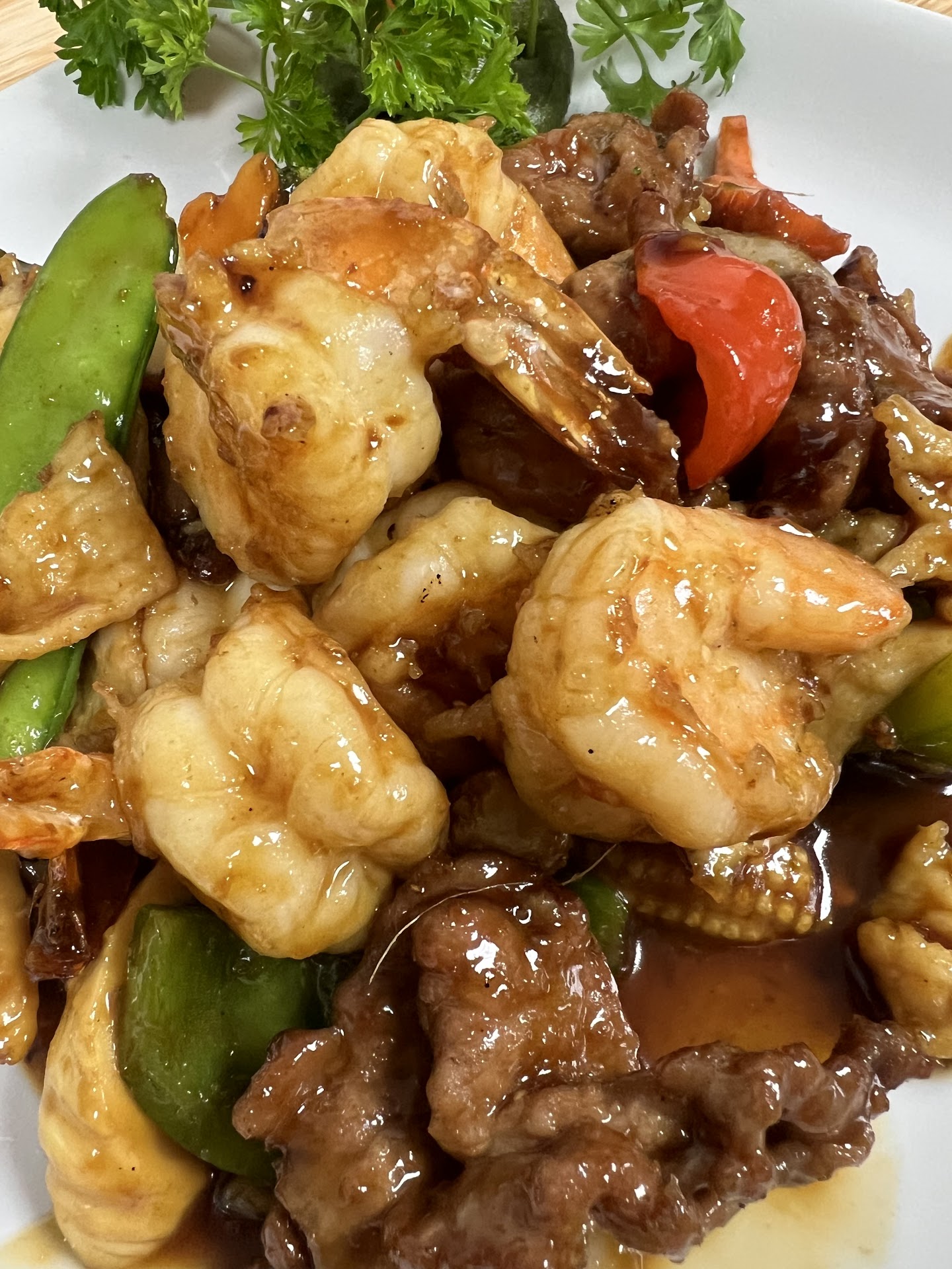 I ordered the House LoMein medium spicy and it was excellent, except not medium spicy hot. But it's the best in town IMO. My partner ordered the Sesame beef and he said it was the best he'd ever had, However the fried rice was the only thing that simply had no taste. I wouldn't have known it was supposed to be fried rice. Looked like white rice with a few light drops of soy...
