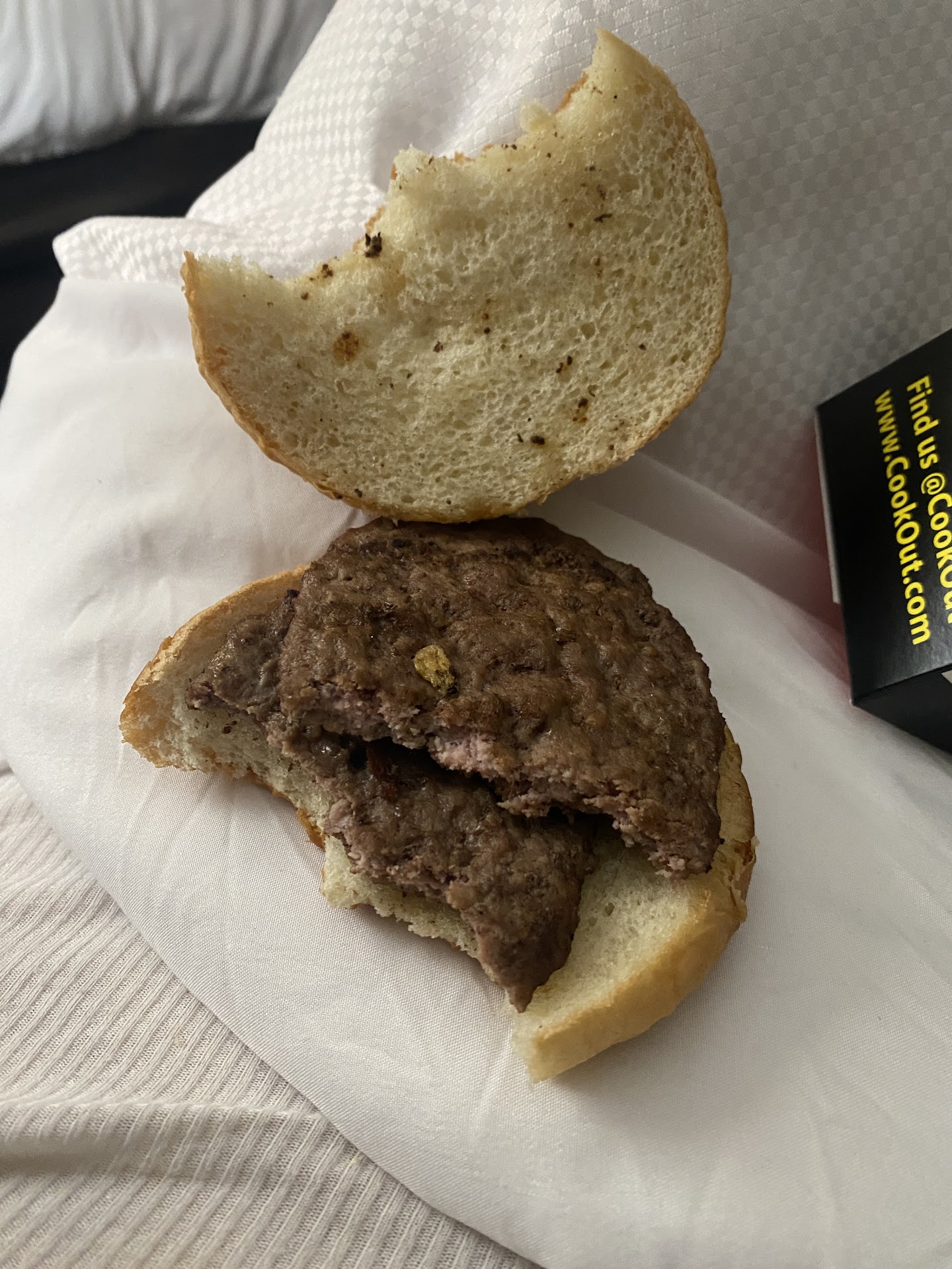 Read moreTwo plain hotdogs, hotdog and bun and a plain hamburger I pulled up to the window I've never been there before. What do you want on it? What comes on it nothing so you want plain I said I want to have they come so I got two plain hotdogs, just meat and bun and meat and bun for hamburger First time ever been to cookout last time I've ever been a cookout. Thank you for not doing anything to help me out the guy the one who could've said whatever you want on them you have to tell me, but that's not what he said he just kept saying so you want them playing it's not my fault you have to work till midnight. I said I want everything 2 times and he kept saying so you want it plain? First and last time. I haven't had a plain hotdog since I was four years old but OK I guess you don't trust people to like what you cook so we got two for service I knew it wasn't gonna be fresh because I ordered Pulled straight up to the window and he handed me the back so hotdogs taste like they were made seven hours ago like he would at home and then you ain't leftover hotdogs but at least nothing on it. Kind of gives it flavor.. I gave it one for atmosphere because the only atmosphere I had was the guy at the window and he had the personality of a shoe. I guess it's my fault that I haven't been to a restaurant before they just search plain food. You could've said hey, you have to tell me what you want on it. Then they closed 20 minutes early.. probably why I got the trash that was left over. Well lucky me I didn't even get the cheese that I asked for. Thank you sir at the window, just a hamburger! Terrible! Two cold patties on a stale bun? Why? Because I got my order in three seconds stale hotdog bun and a hotdog it taste like it was from earlier today, Terrible! I actually lowered the rating after I had the food because it was that terrible... the bun is actually chewy! This is the worst fast food I've ever had in my life and I'm 51 years old. What a toilet! That isn't worth $1! The second hot dog bun is actually hard. Just go to 7-Eleven...