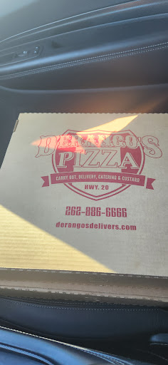 Read moreAvoid this place they are WAY over priced and there’s much better pizza places in town. Here’s a story of a situation I had: About a week ago I ordered an extra large half bacon half sausage thin crust pizza. When I went to pick it up at the time they told me to they said they did not have that order. I have been ordering pizza from this place for over 3 years and in fact have their number memorized. The girl at the counter took my number and the exact time I called to see if it was in the history. She said she did not have any call from my number. And she did not have a pizza for me. She did not offer to take an order or provide any help for a solution to this situation. She suggested that I ordered from the other derangos down the street. She was very rude and should not be in the front of house. The different derangos do not share the same number so I did not understand how my call could go from their number to the other place for my order to be taken because someone took my order. So, I left upset and frustrated that I had to go somewhere else. About 15 minutes after I left I received a call that she was able to “locate my pizza.” She must be a magician because there was no pizza 15 minutes prior and because she was able to “locate my pizza.” (Which were her exact words) She did not apologize for HER mistake or offer any kind of compensation (ie free delivery or a discount or something/ anything). We told her we did not want it. I will never order...