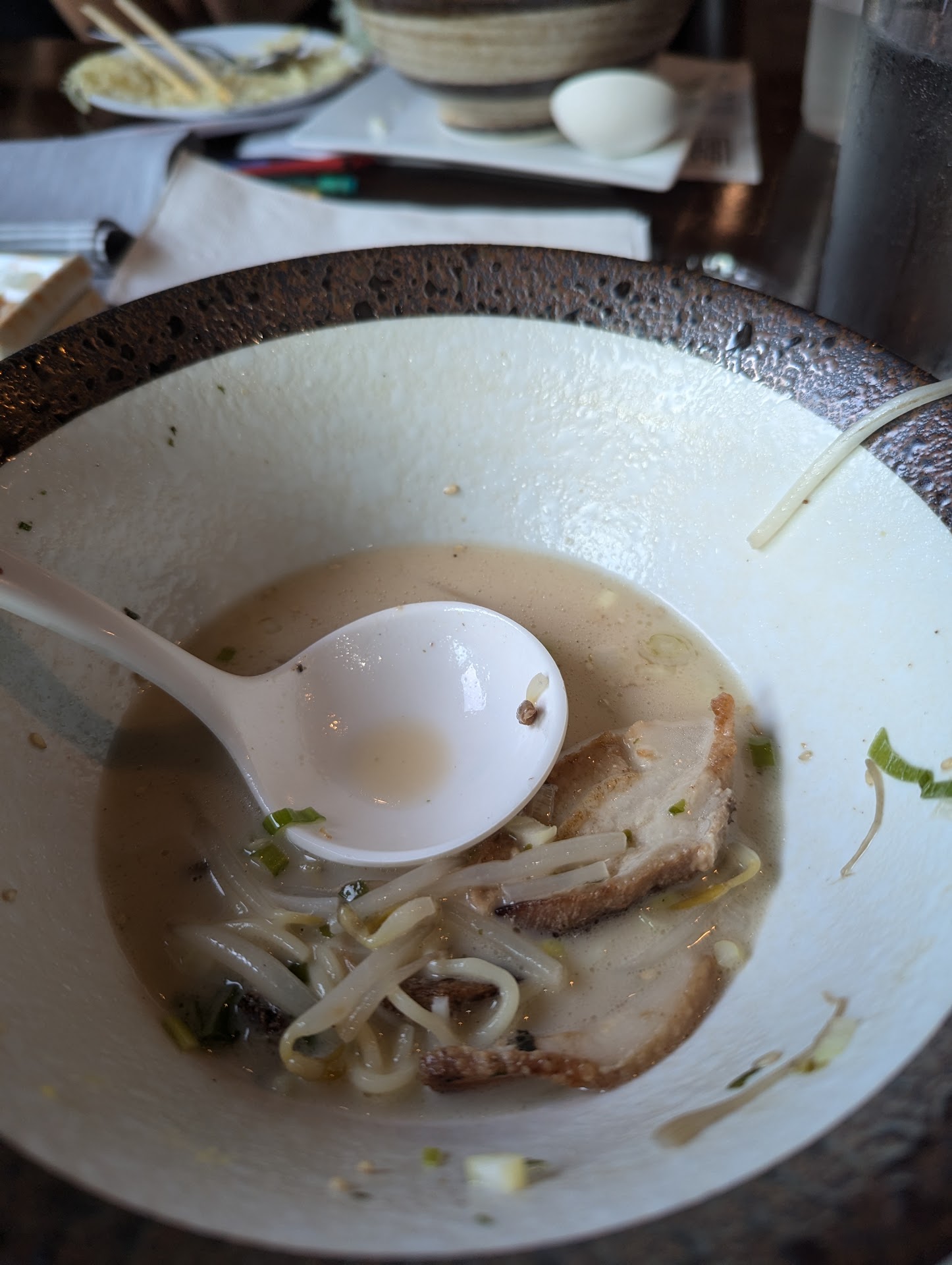 Read moreMy ramen is empty. Which is how good ramen should be seen, finished. The pork ramen at Fuji is almost a great bowl of ramen. Salty white broth with a sweet finish and hit of crab offering an homage to the local faire. The pork and egg are where it loses sight of the perfect note. The pork unfortunately was fried crispy to the point where it had no flavor. Thankfully the broth rescues it and helps overcome the pork shortcoming. The eggs were overcooked but being "soy eggs" they have that lovely Carmel color and flavor to them but lack the creamy inside and kills the joy of a great soy egg. If not for the broth saving the whole dish this would be a different message.